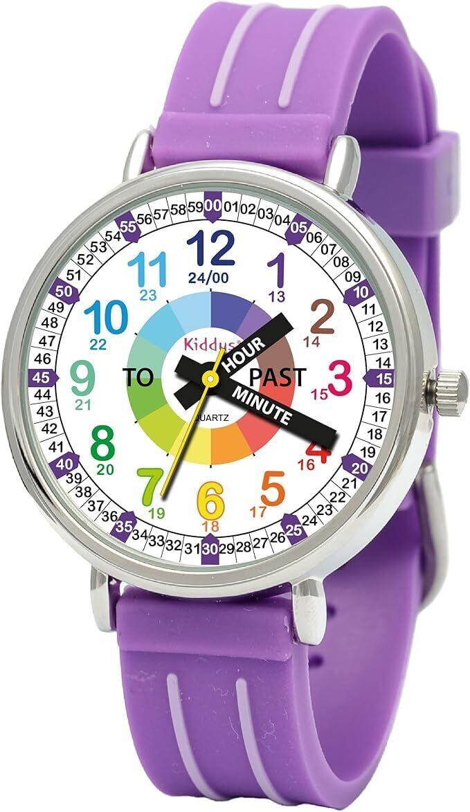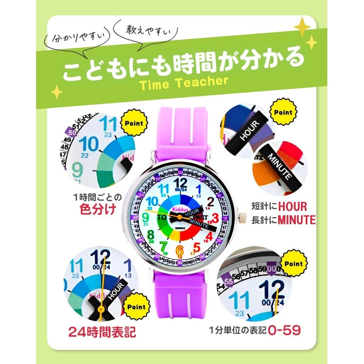 キッダス (Kiddus) 英語 知育時計 子供 知育 腕時計 スペイン発 海外で大ヒット アナログ クオーツ 防水 進級祝い 卒園記念品 入学祝い プレゼント おしゃれ キッズ 男の子 女の子 (パープル)