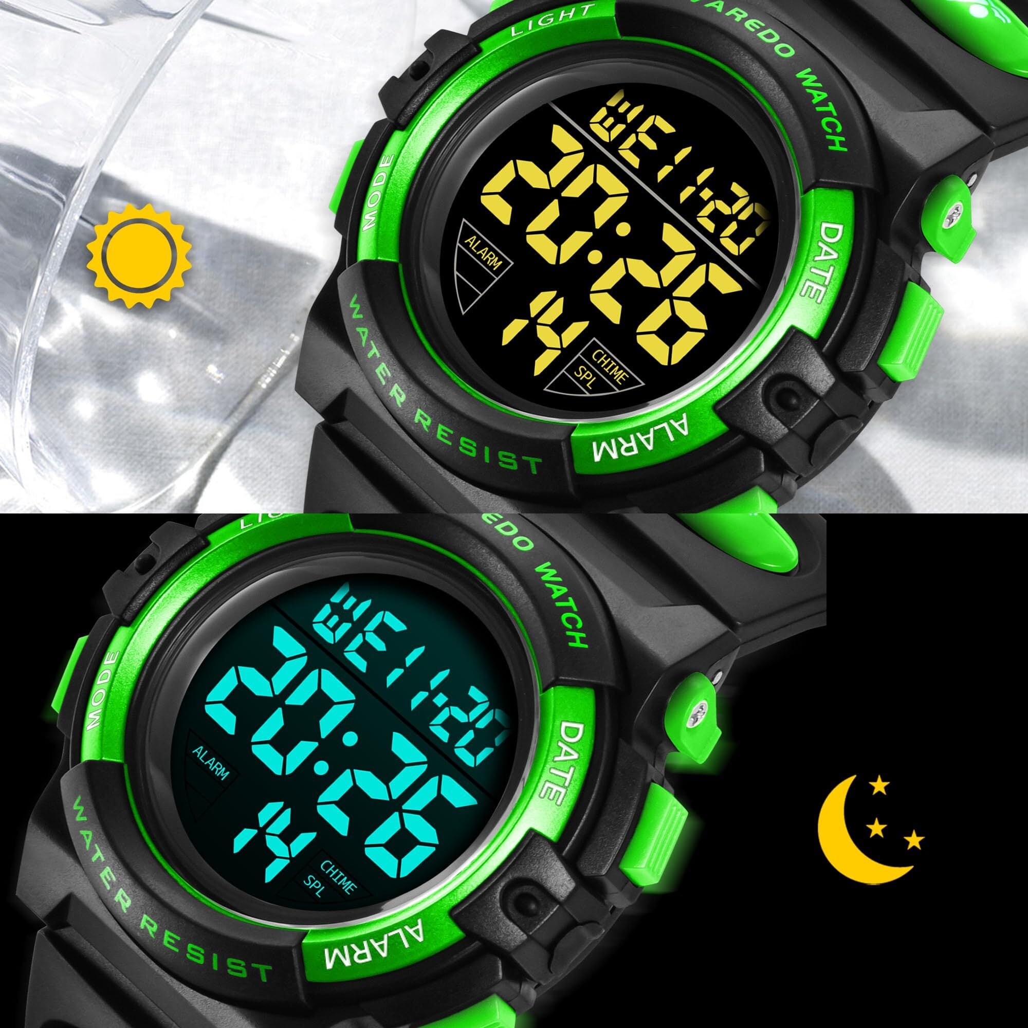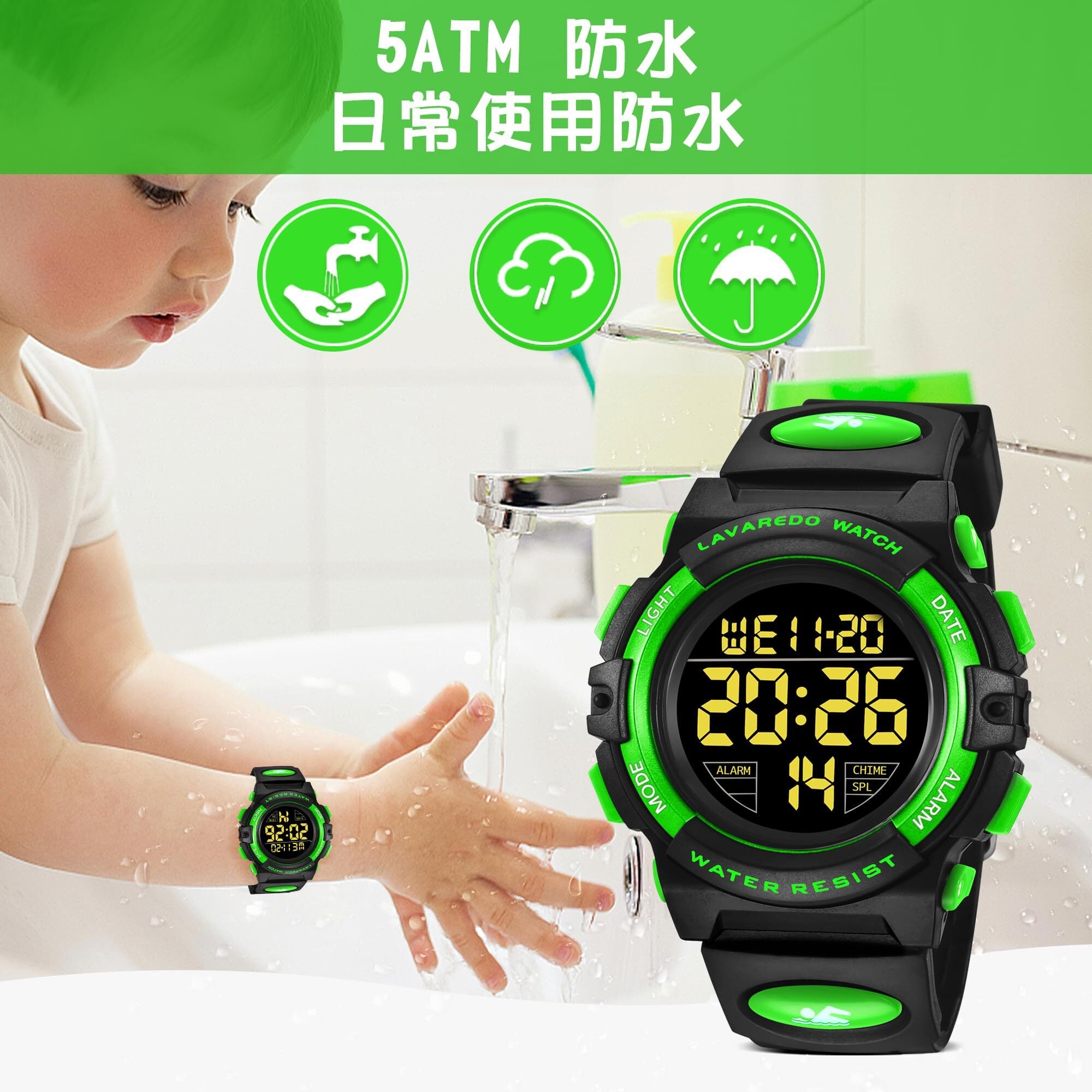 多機能デザイン:50M防水、デジタル表示、LED発光表示、日付表示、アラーム、ストップウォッチ。 日本語の説明書が付いていて使いやすいです。ファッションスポーツ腕時計、子供のお気に入りの贈り物。