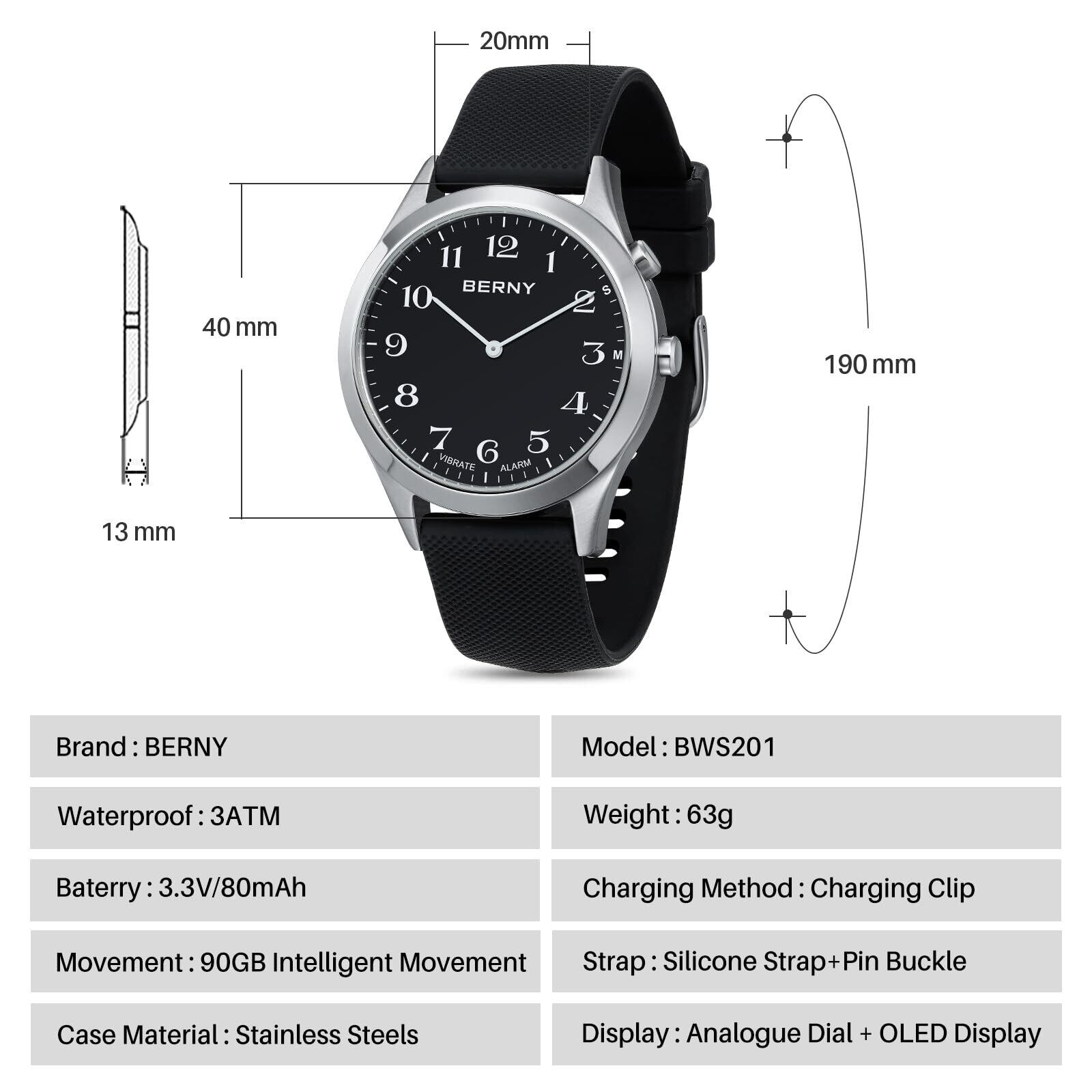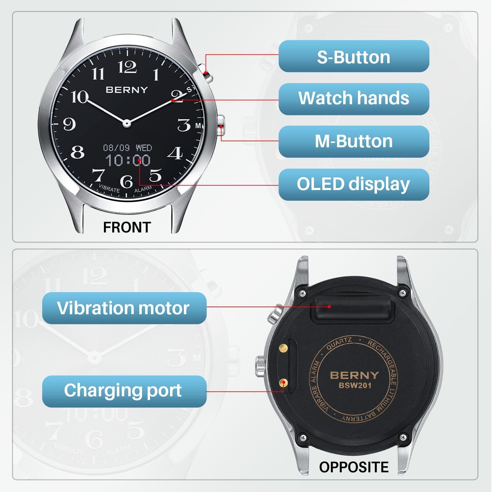 【特価商品】BERNY 腕時計 振動式腕時計 多機能腕時計 隠れたOLEDディスプレイ 振動アラート アラームの設定が可能 高齢者・聴覚障害者向けに特化した設計-3気圧防水 ブラック… | 無意味ステッカー