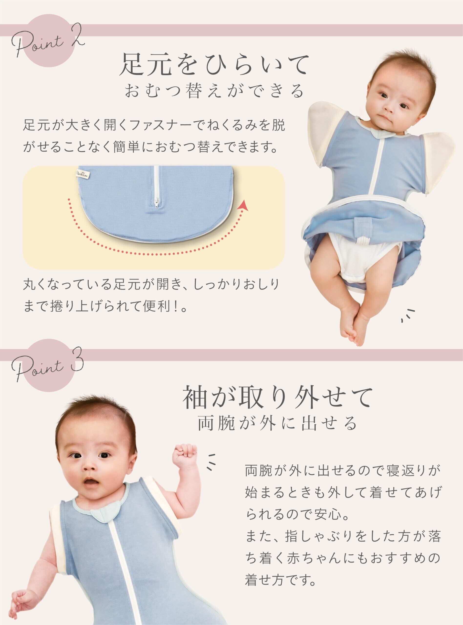 【特価セール】ねくるみ 秋 冬 スワドル 新生児用 足元オープンで夜間オムツ替えラク 腕出しOK 綿96% 伸縮生地 洗濯機・乾燥機OK 足元オープン IHDI認証 M字設計 助産師の声から | 無意味ステッカー