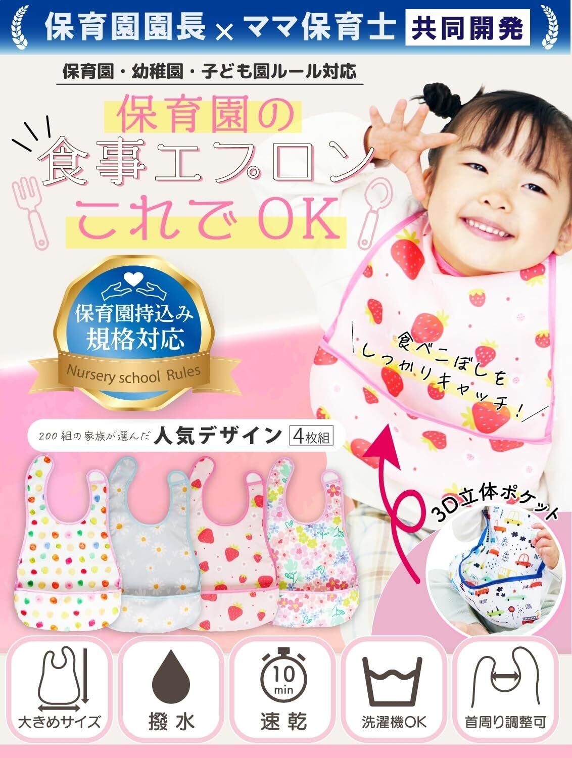 [Riris] 【保育園用で選ばれる 園長×ママ保育士開発 保育園規格エプロン】ネームタグ お食事用エプロン ベビー 【男女デザイン有】 洗濯機OK 10分速乾 撥水 離乳食 大きめサイズ 3Dポケット