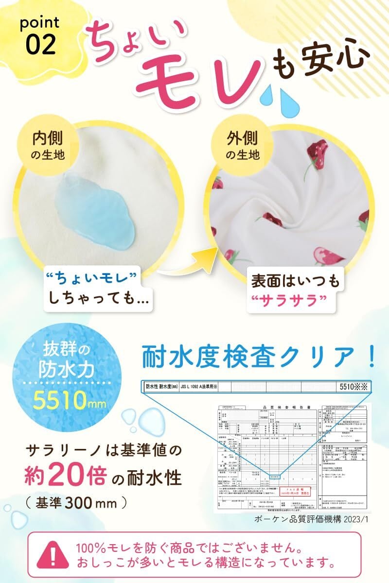 【10,000枚突破!さらさらトレパン「サラリーノ」】 皆さまに選ばれて1万枚突破◎ソロンソの大人気トレーニングパンツ「サラリーノ」は、さらさら高密度生地を使用した、ムレにくく肌に優しい着け心地が特徴です。「安心してトイトレを進めたい!」というママパパの願いに応えるため、吸水力と快適さを両立させた設計になっています。4層と6層の2タイプから選べるので、お子さまのトイトレの進み具合に合わせてピッタリな1枚をお選びいただけます。涼しさと吸水力を兼ね備えた「サラリーノ」で、トイトレのできたをサポートします!
