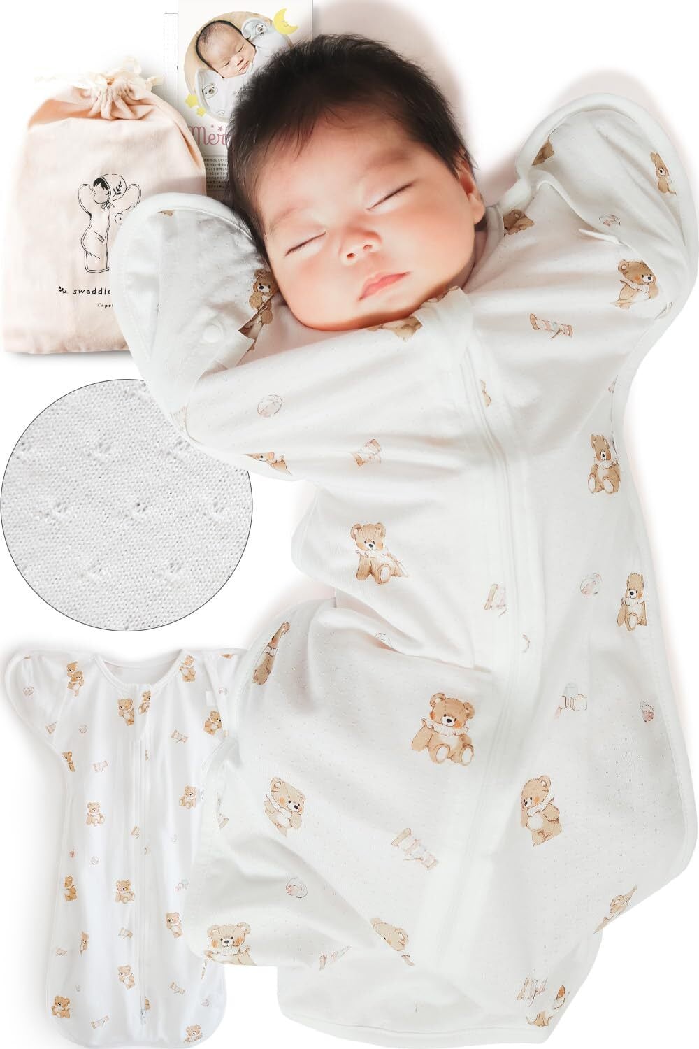 【新春セール】【バンブーメッシュでサラサラ持続】 スワドル おくるみ 夏用 新生児 【手が出せる 抗菌消臭+ ムレにくい 軽量設計】 バンブー メッシュ コペルタ ベビー用品 出産祝い | 無意味ステッカー