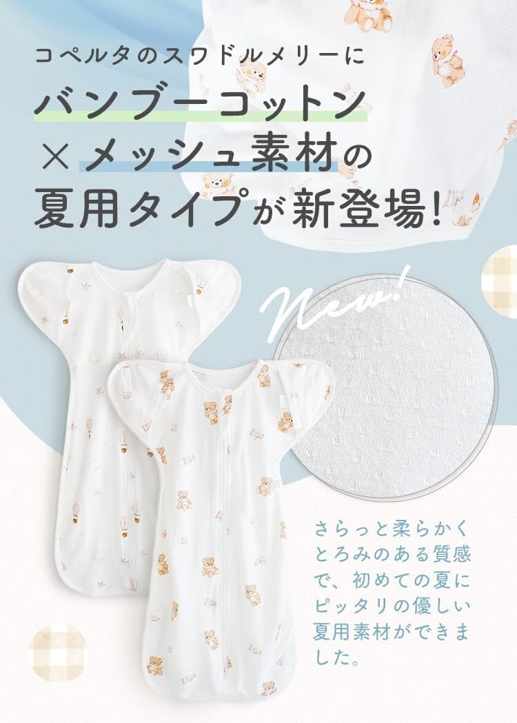 【バンブーメッシュでサラサラ持続】 スワドル おくるみ 夏用 新生児 【手が出せる 抗菌消臭+ ムレにくい 軽量設計】 バンブー メッシュ コペルタ ベビー用品 出産祝い