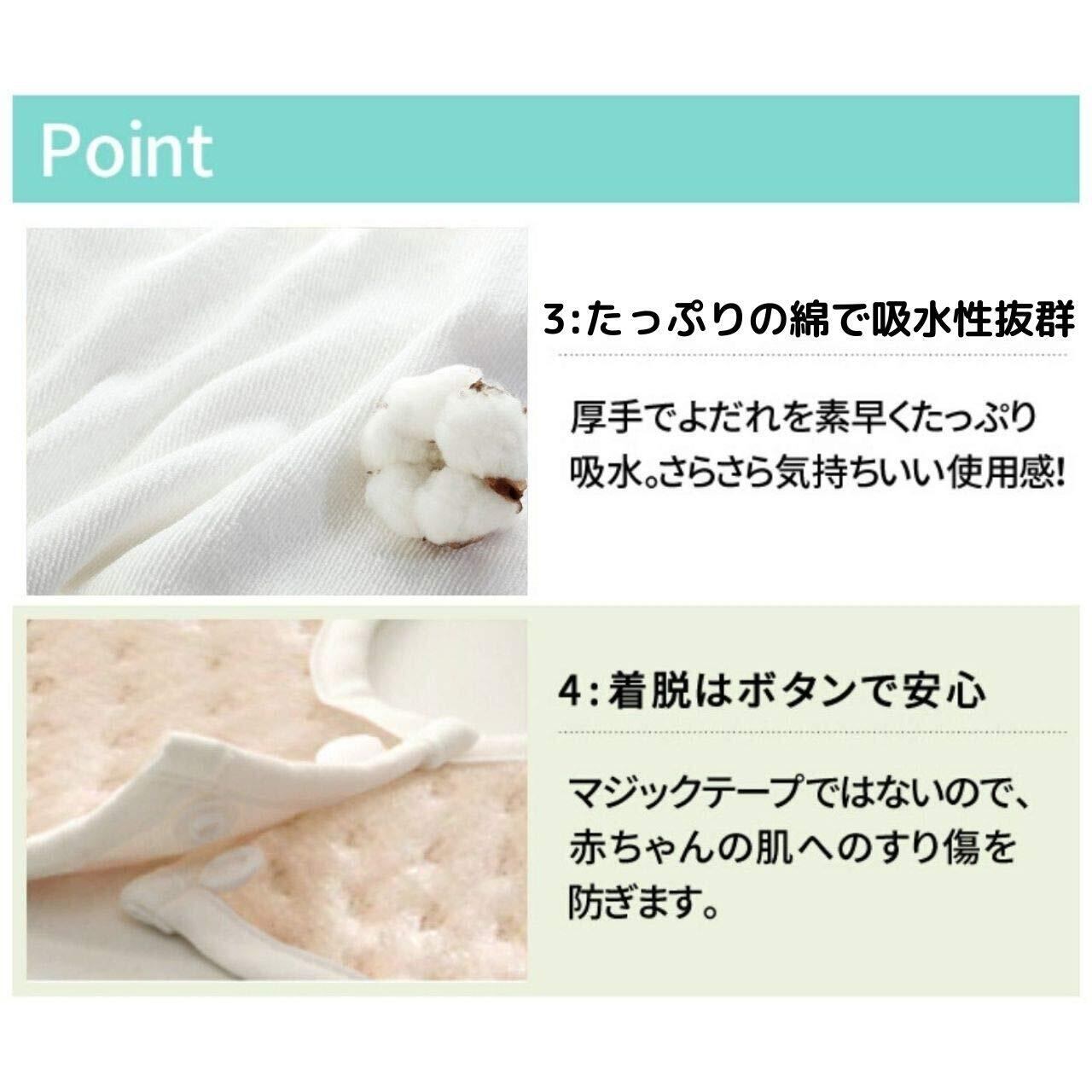 【超防水仕様】裏面の外面が防水生地になっており、よだれが下の服に染みるのを防ぎます。よだれたっぷりの赤ちゃんも、首元の肌荒れを抑え、すべすべのお肌✨を守ります。