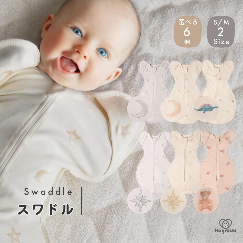 スワドル コットン おくるみ 新生児 モロー反射 寝かしつけ 夜泣き 手が出せる ダブルファスナー 新生児 0歳 1歳 2サイズ Hugmuu ハグムー (Bear, M)