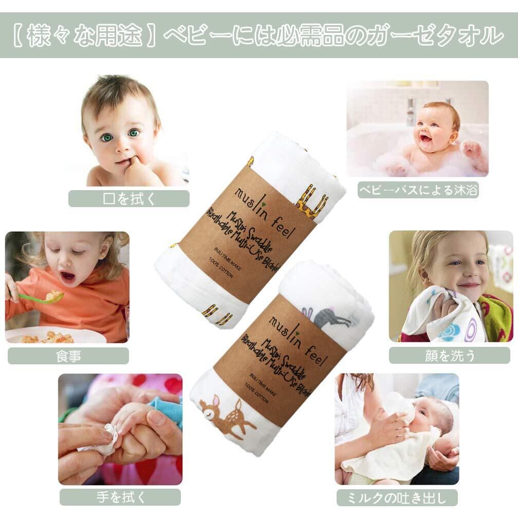 3.「多くの場合に活躍」適用なサイズで、プレイマット、ベビーカーの日よけカバー、ベビーバスタオル、タオルケット、授乳ケープ、寝袋、おむつ替えシーツなど幅広い範囲にわたってお使いいただけます。