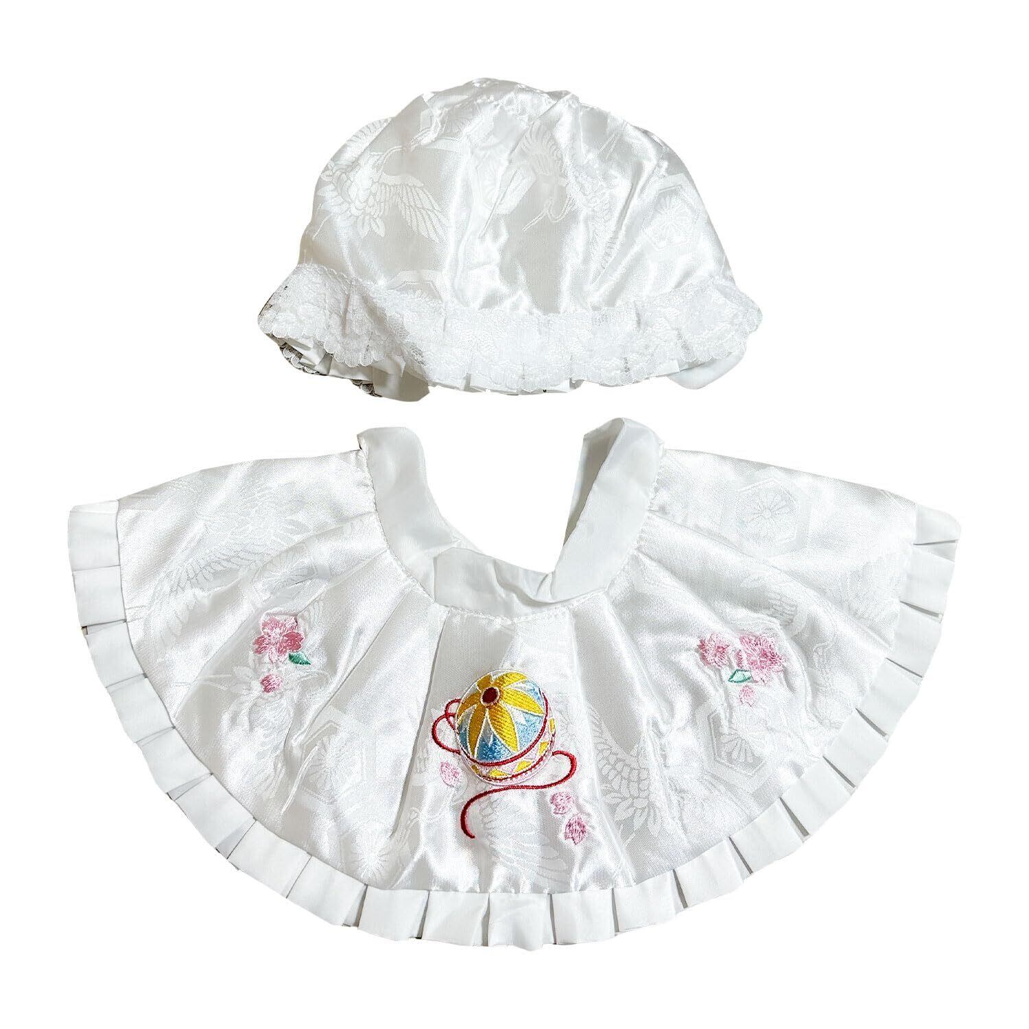 【新着商品】[あめてまり] お宮参り フードセット 2点セット 帽子 涎掛け 刺繍入り フード 白 洗える 女児 男児 男女兼用 産着 よだれ掛け スタイ 洋フード 刺繍 高級地紋入り生地 光沢 箱なし 柔らかい 鶴 毬 鷹 赤ちゃん 100日参り 初着 帽子スタイセット | 無意味ステッカー