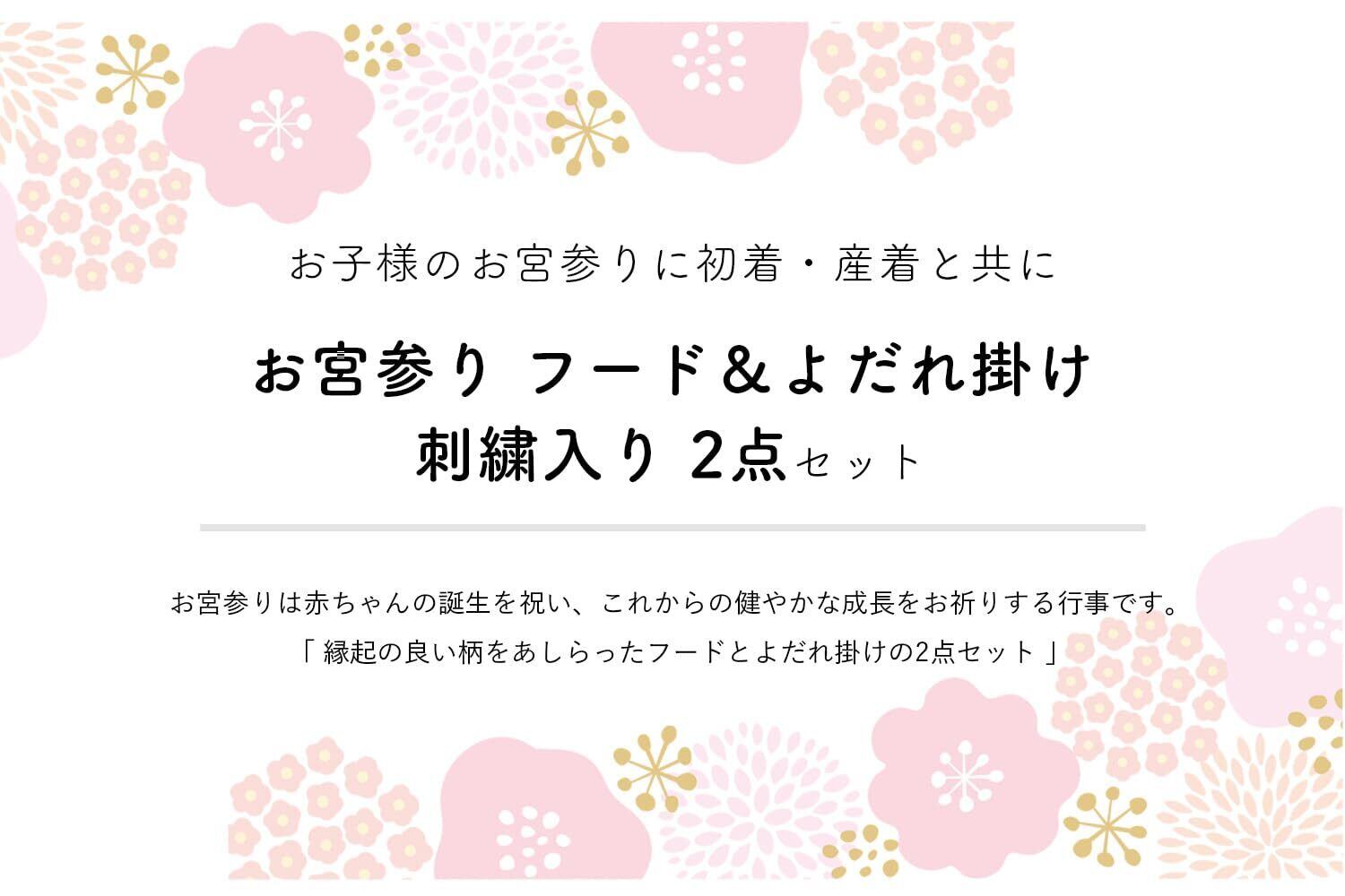 \赤ちゃんのこれからの成長を願うお宮参りの必須用品/ フード&涎掛け 2点セット(豪華刺繍入り)