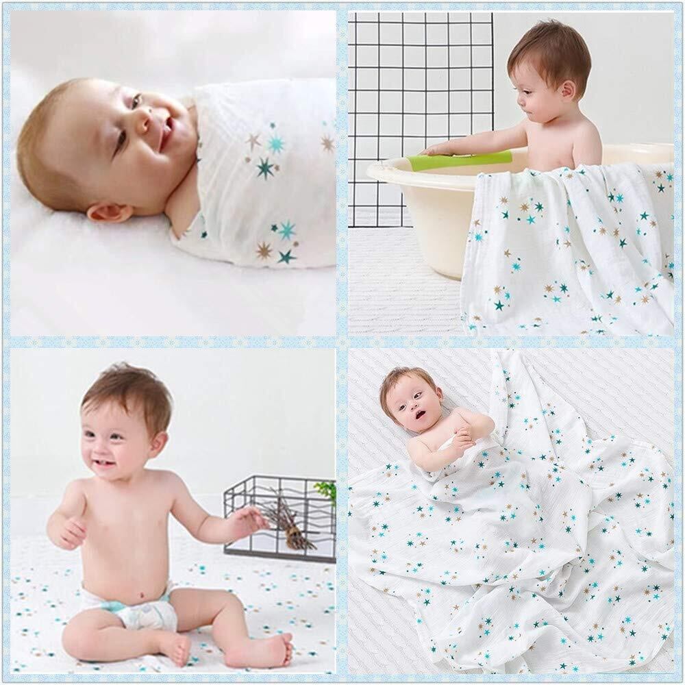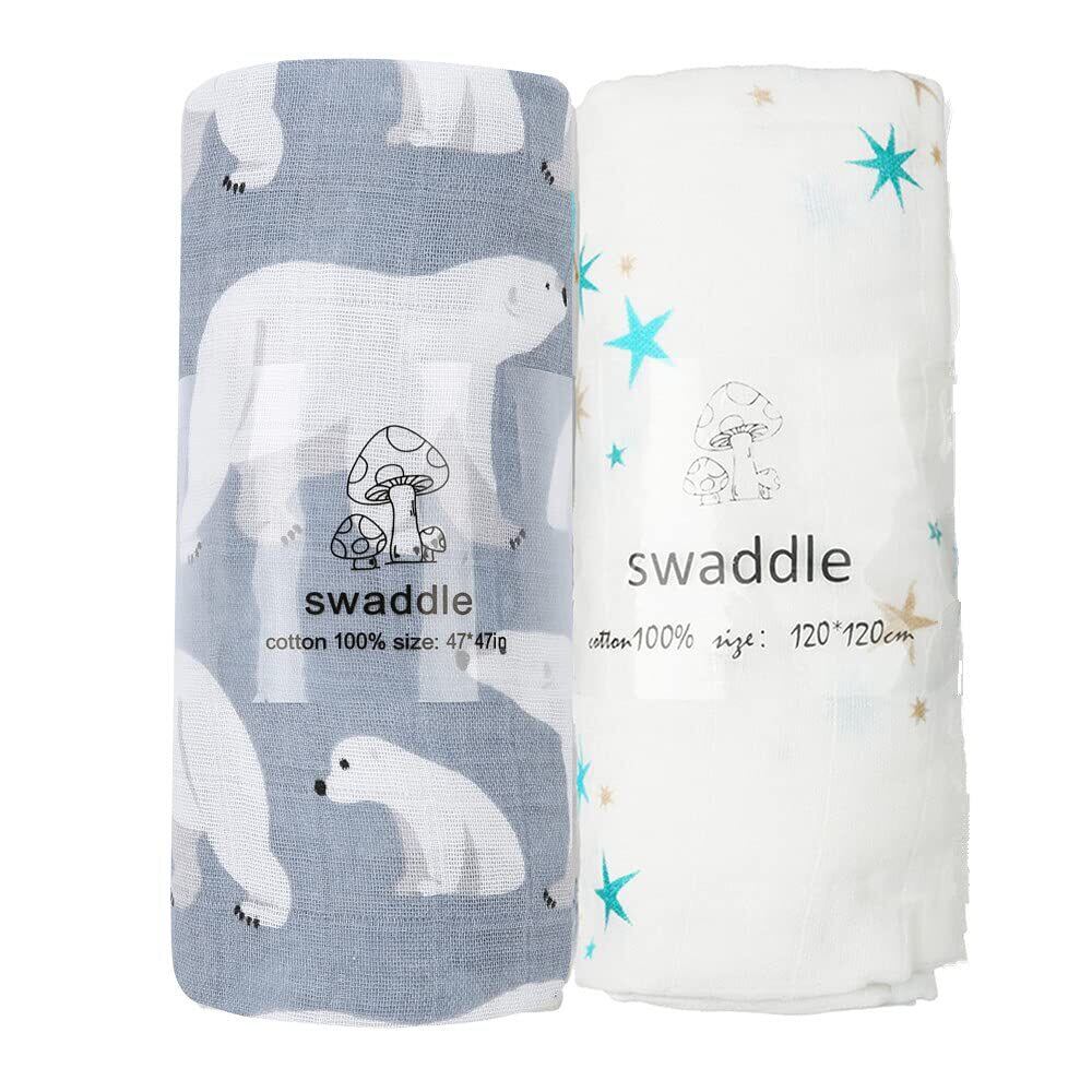 おくるみ ベビーブランケット ベビーバスタオル ガーゼ 授乳ケープ 赤ちゃん 新生児 スワドル 出産祝い 120*120㎝ 綿100% 2枚セット(ブルー系)