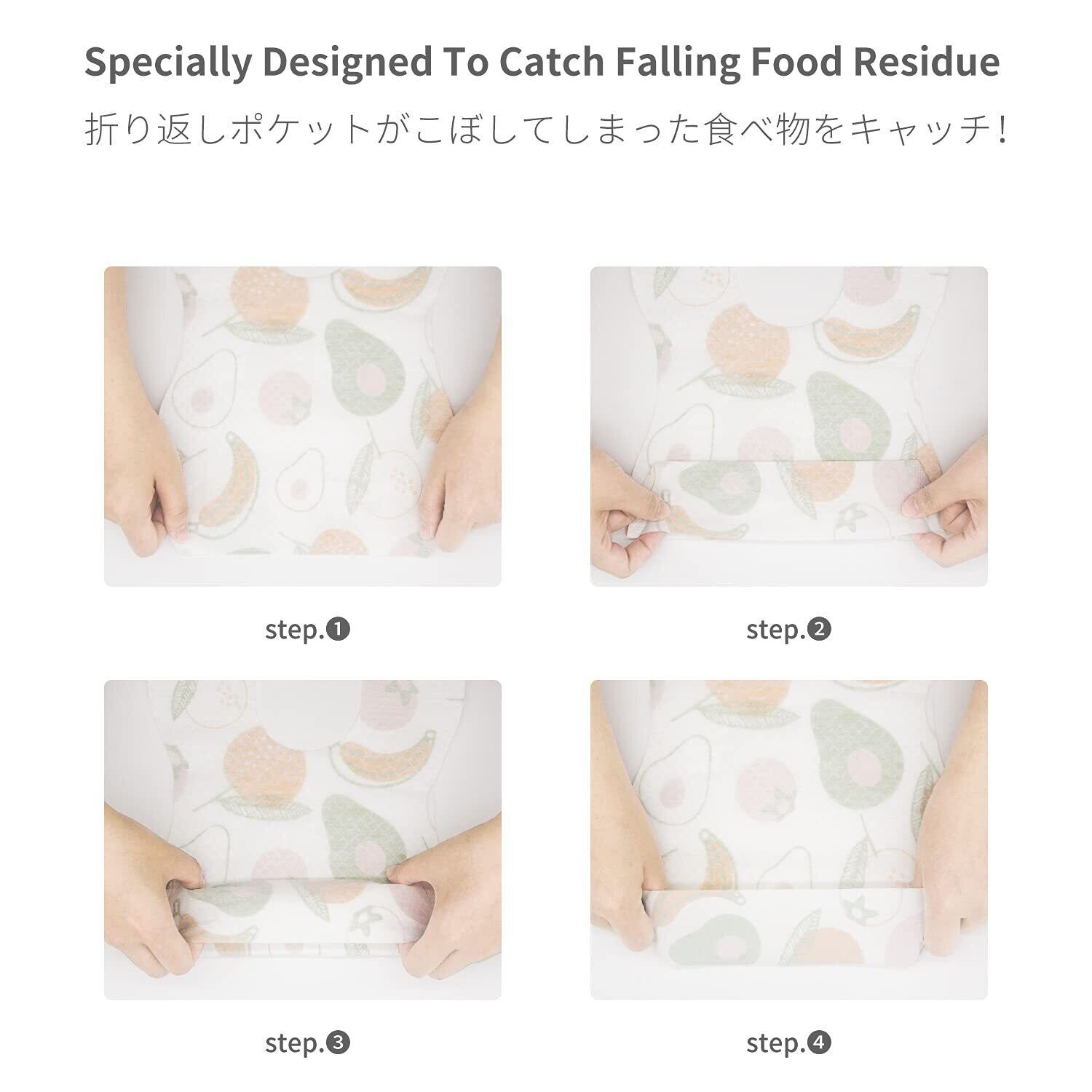 「ケット付で食べこぼしても安心」三層構造だから丈夫で破れにくく、また裏面に防水フィルム加工を施してあるので飲み物をこぼしても衣服に汚れがつきにくいです。取り付けるときに衣服に直接つけるタイプなのでお子さまの首周りを締め付けません!