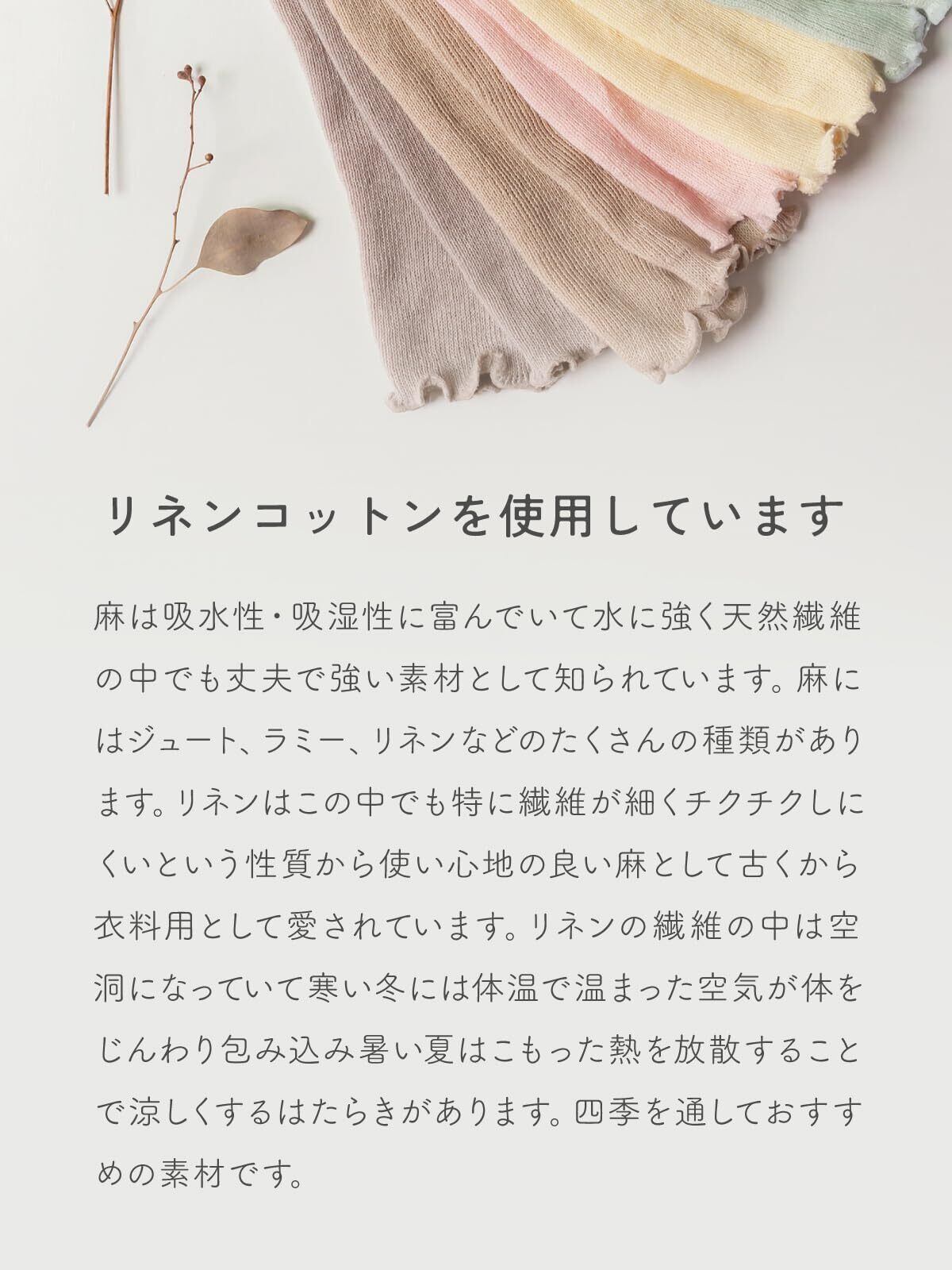 【コットンとリネンで適度な温かさ】素材|:綿,リネン|春夏だけでなく秋冬にも着用いただける生地であり、長時間の着用がいただけます。