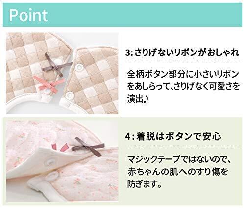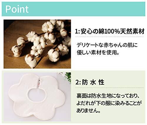 【防水仕様】裏面の外面が防水生地になっており、よだれが下の服に染みるのを防ぎます。よだれたっぷりの赤ちゃんも、首元の肌荒れを抑え、すべすべのお肌を守ります。