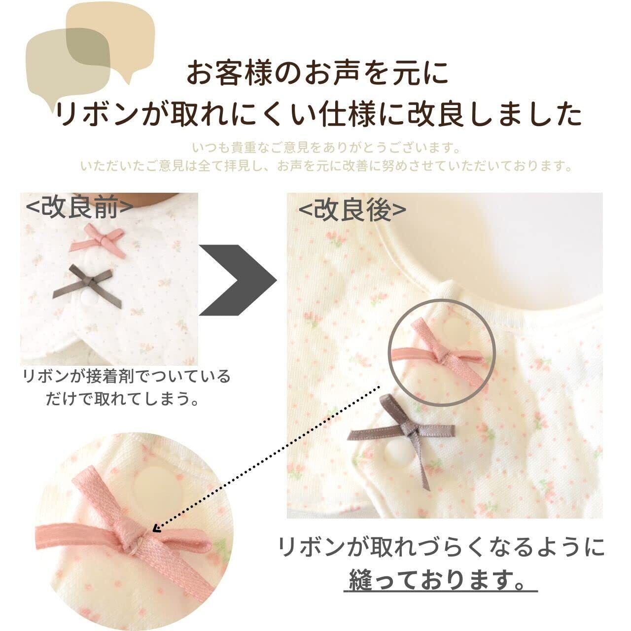 【派手過ぎず落ち着いたデザイン】派手過ぎず落ち着いたデザインなので、赤ちゃんの服と合わせやすいです。ボタンには小さなリボンがあしらわれているので、シンプルな中にもさりげない可愛さ・オシャレさを演出できます。