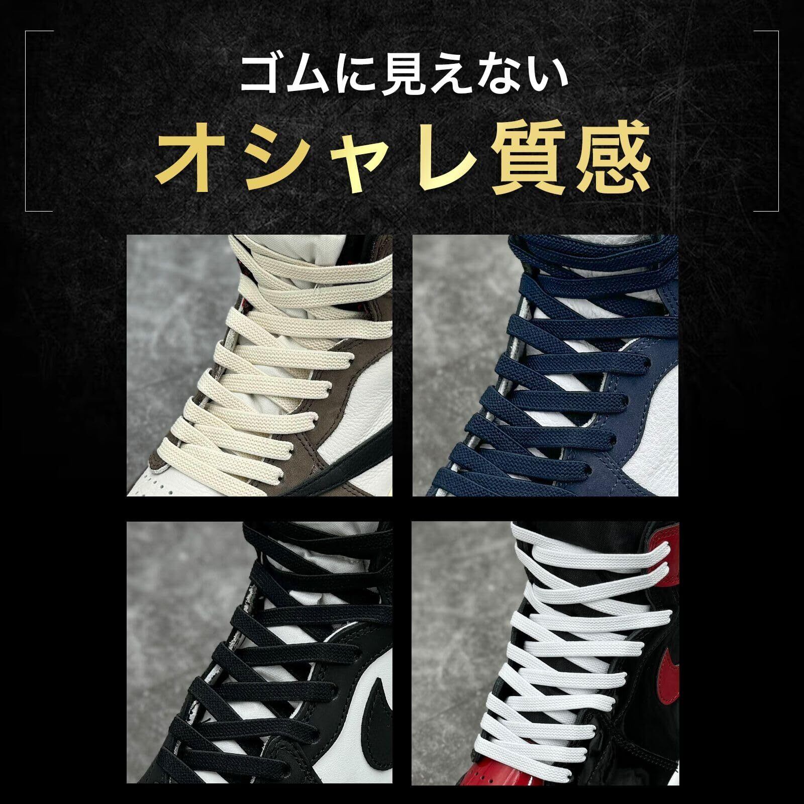【2022最新】[KutsuGoods] クツグッズ (脱ぎ履き簡単) 伸びる靴紐 ゴム 平紐 イージーシューレース 100 120 140 160cm ハイカット 子供 白 黒 スニーカー | 無意味ステッカー