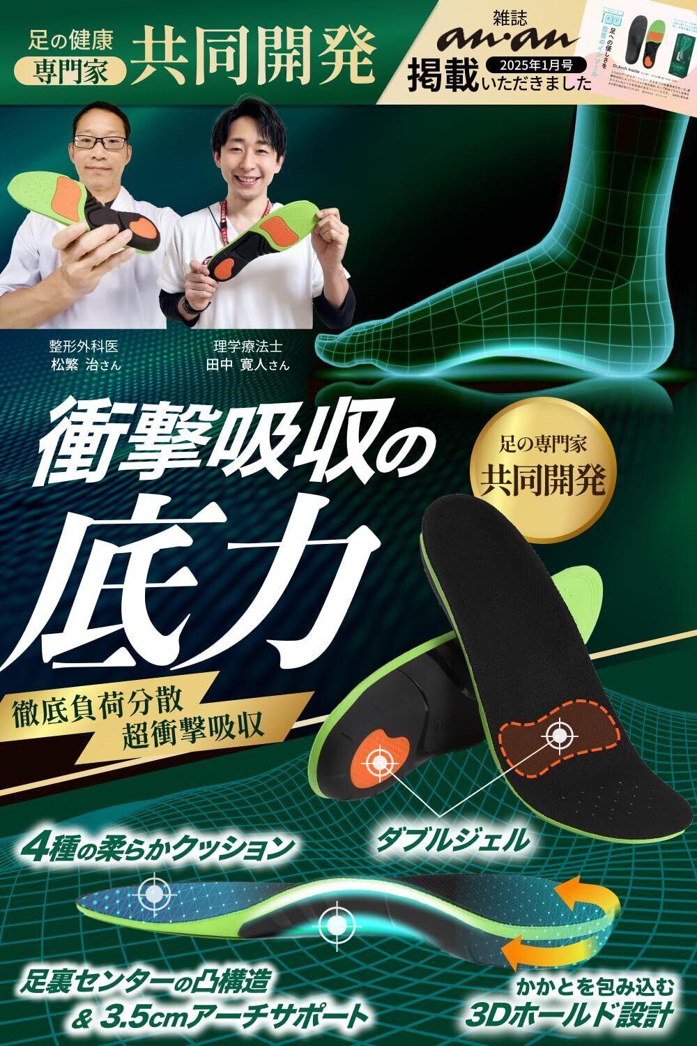 【anan掲載×整形外科医推薦モデル】インソール 衝撃吸収 靴中敷き 『超衝撃吸収ダブルGELで疲れ・痛みへ徹底コミット』 (M(26.0cm〜27.0cm))