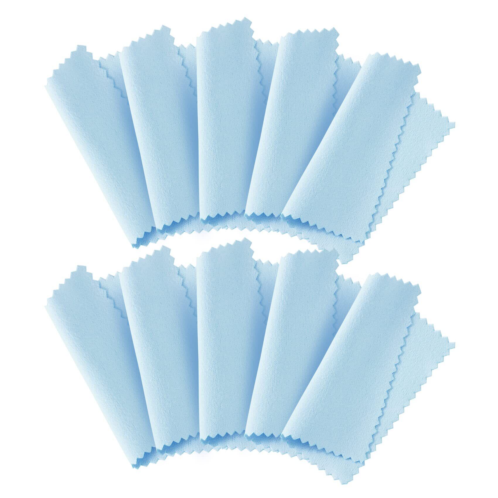 Annhua シルバークロス 10枚セット シルバー磨き 銀みがきクロス シルバーお手入れ 銀磨き アクセサリー 磨き布 汚れ落とし ジュエリー クロス シルバークリーナー 貴金属 銀製品 指輪 腕時計 艶出し 8x8cm ブルー