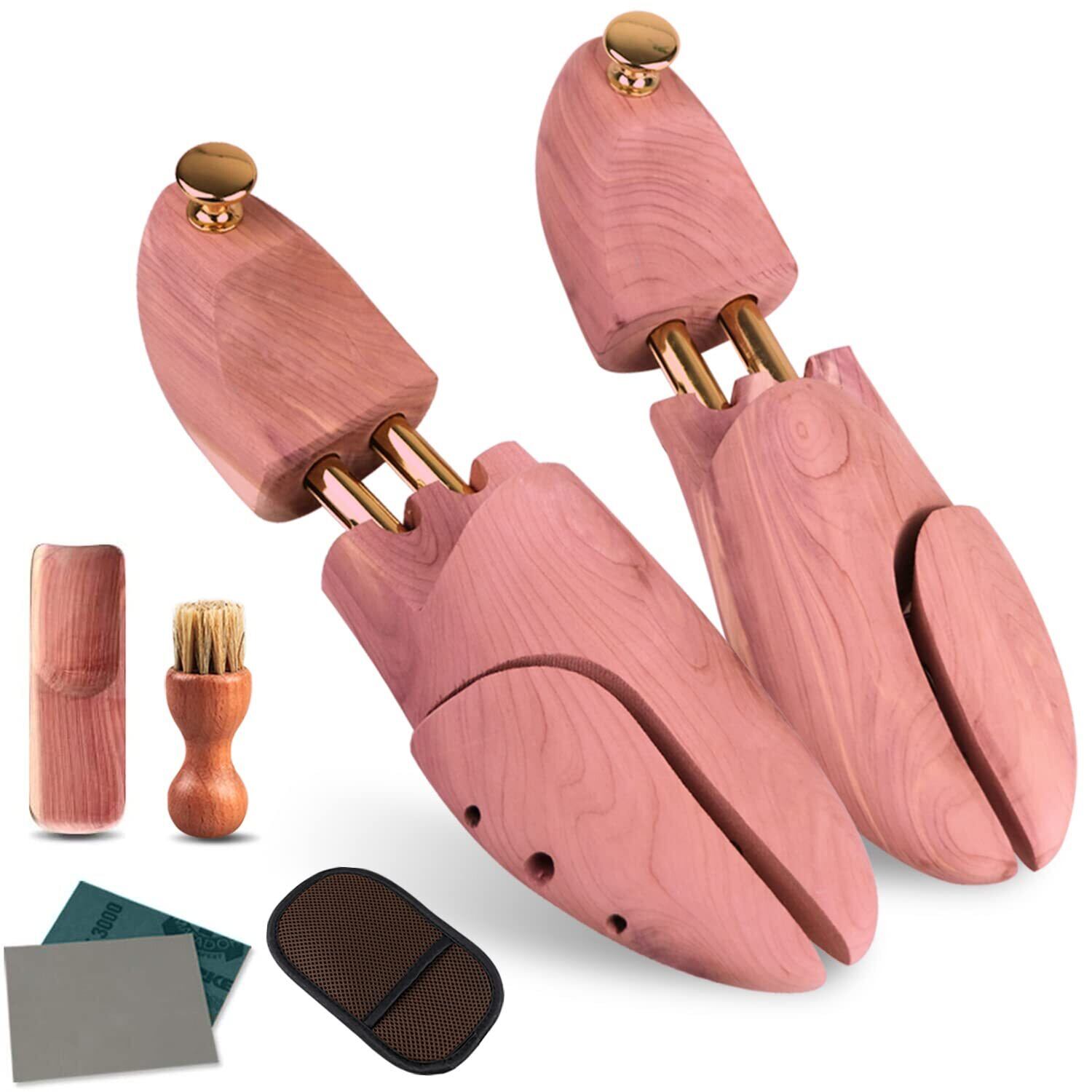 【新春セール】Wellnice シューキーパー シューツリー 高級レッドシダー 24.5-29cm対応 ブラシ・ムートン靴磨きクロス付 繋がる木紋 シワ伸ばし 型崩れ防止 調湿・脱臭・殺菌抗菌・香りメンズ | 無意味ステッカー