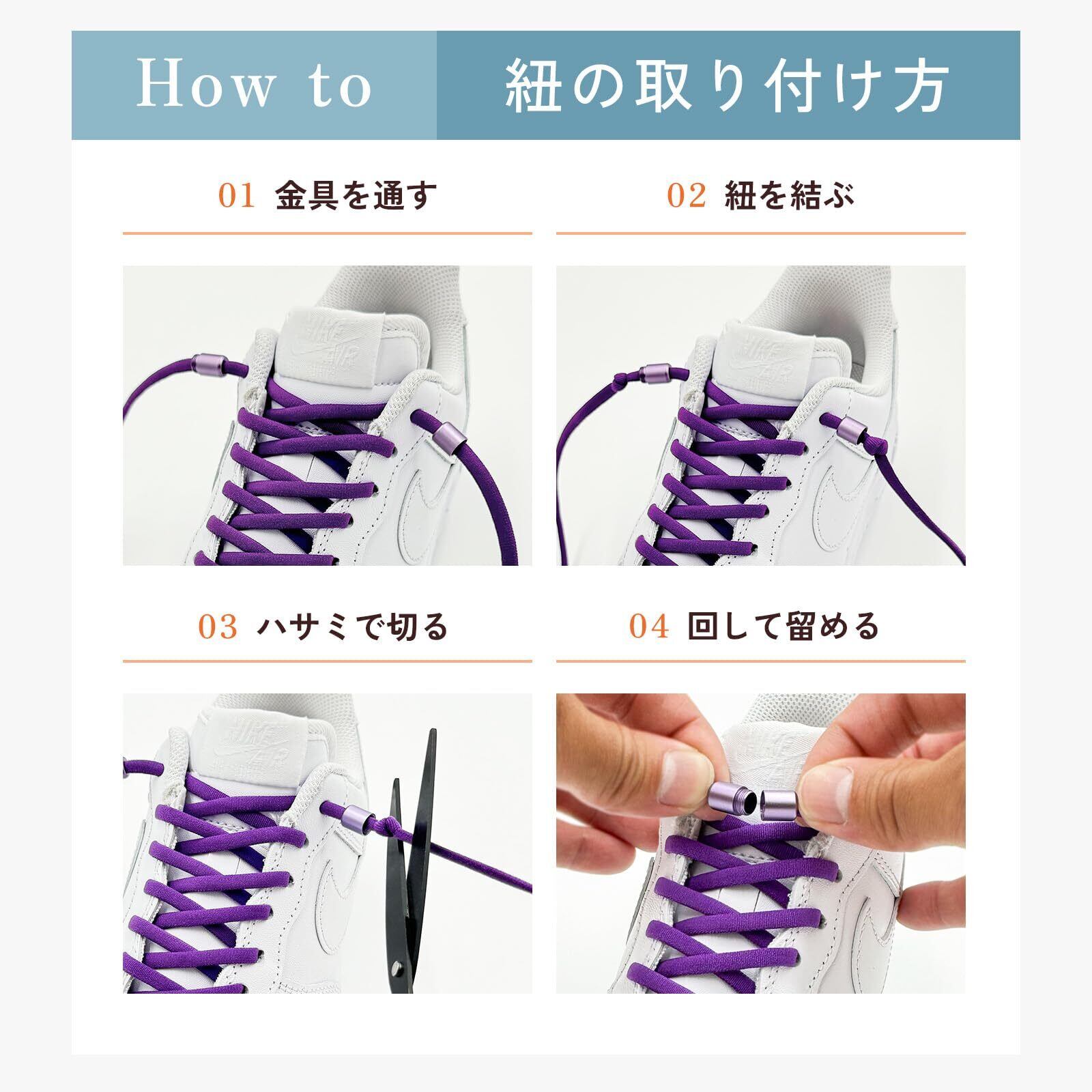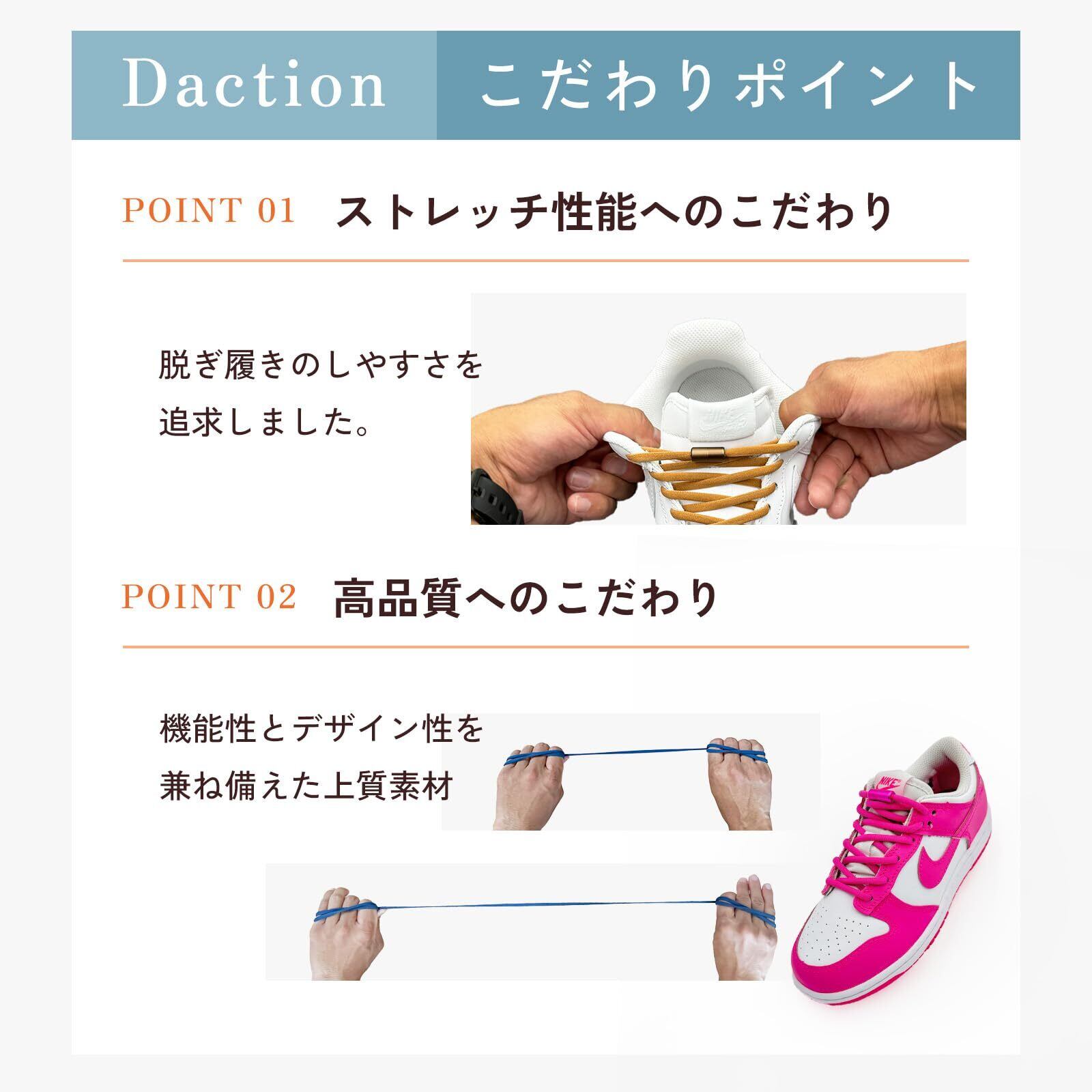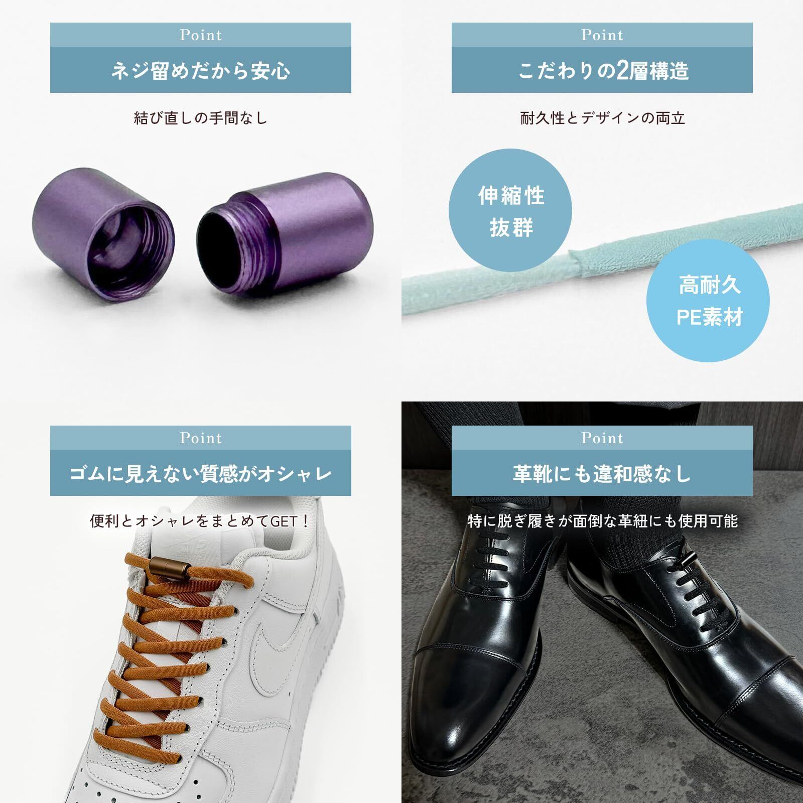 [Daction] ダクション 結ばない靴紐 伸びる 靴ひもゴム ほどけない シューレース 子供 スニーカー くつ 革靴 金具 留め具 黒 白 赤 青 緑 紫 黄色 水色