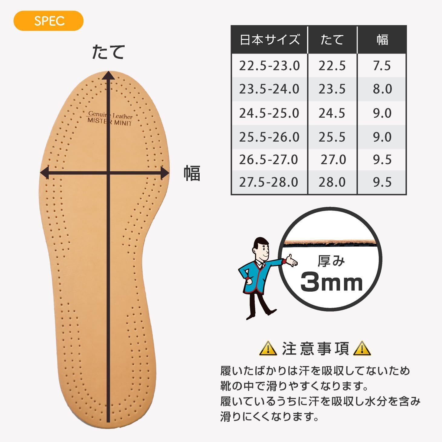 [ミスターミニット] レザー インソール ベーシック 中敷き 革靴 薄型 ヌメ革 シープレザー サイズ調整 ムレ防止 消臭 吸湿性 足の臭い ビジネスシューズ ドレスシューズ メンズ レディース