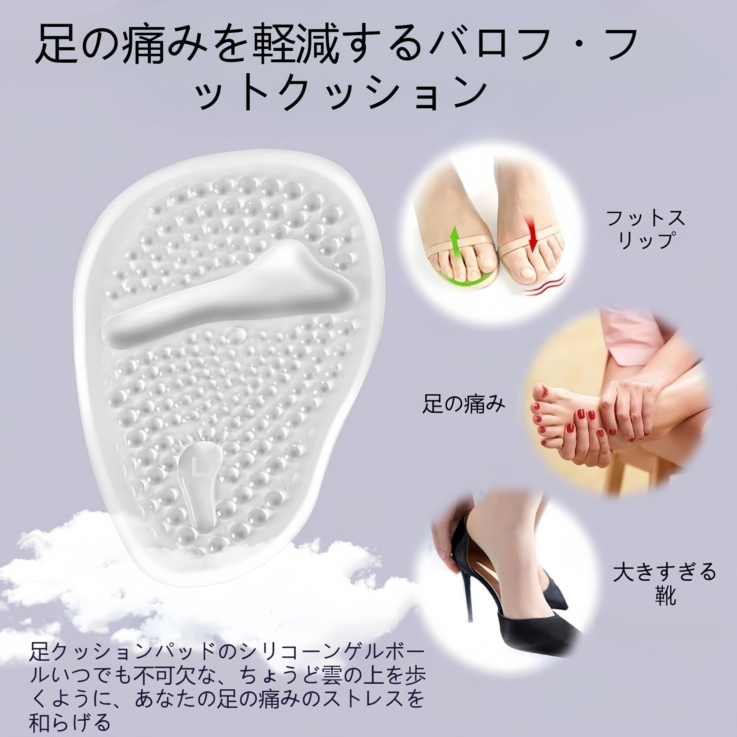 【快適なサポート】:中足骨パッドは高品質のソフトゲルで作られています。 ハイヒールを履いての仕事、ダンス、ショッピングなど、この中足骨パッドは優れたクッション性と衝撃吸収性を提供し、足の痛みを和らげます。