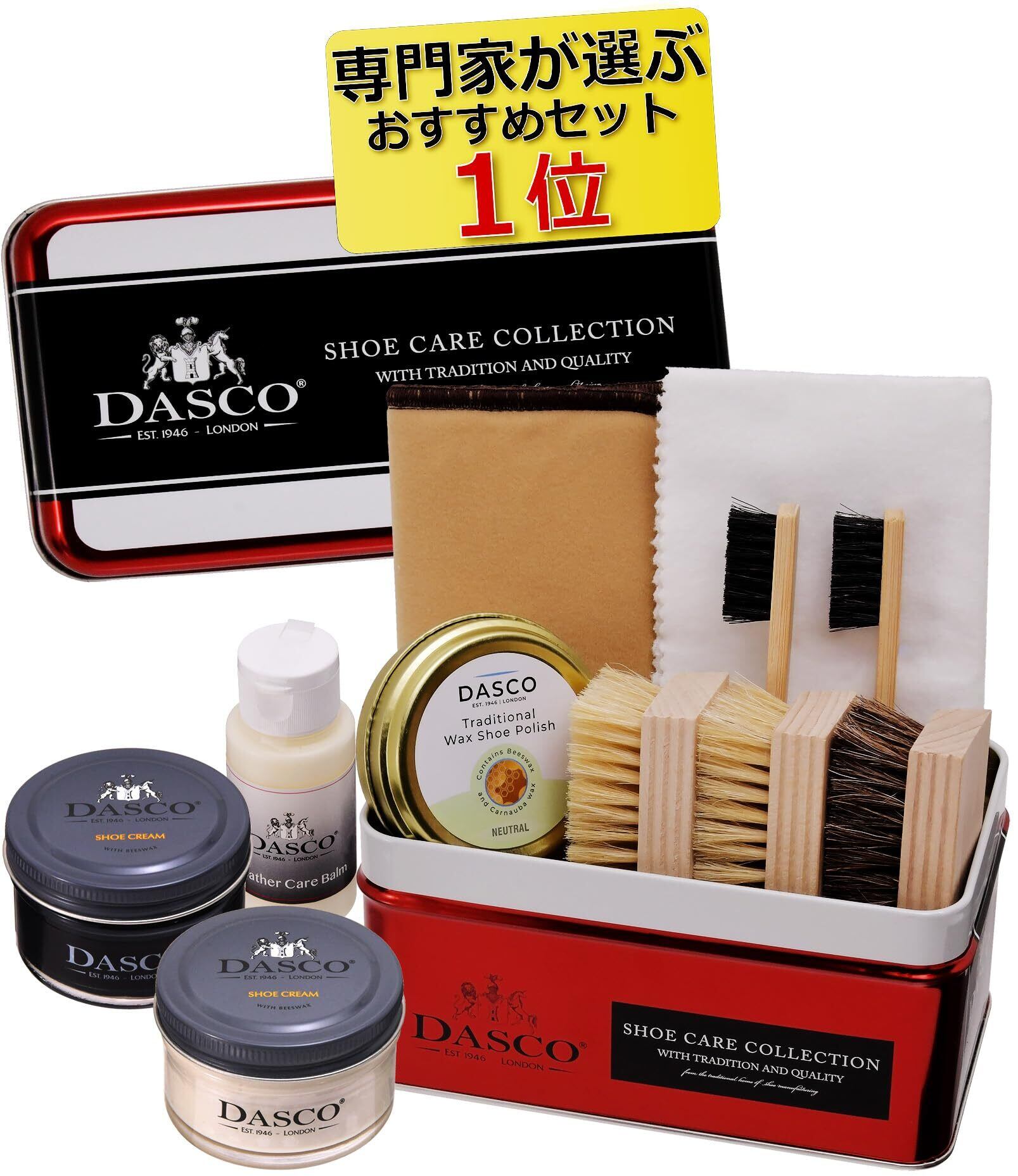 [ダスコ] 専門家も絶賛 英国伝統の品質 全色対応 2色入り シューケア コンプリート セット (PA-DSZP) 靴磨きセット 革靴 ハイシャイン 馬毛ブラシ 豚毛ブラシ かんたん お手入れ 初心者 ビギナー 黒 + 無色