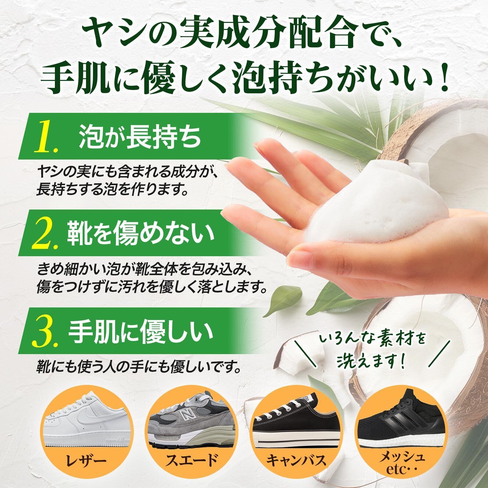propre SHOE CLEANER KITは、100%天然毛のブラシ、柔らかいマイクロファイバーのクリーニングクロス、ソール磨き用のメラミンスポンジ、そしてスニーカークリーナーシャンプーの4点セットです。 フォームタイプの洗剤は、水を一切使用せず、すすぎも必要なく手軽で時短になるうえ洗浄力も高いため、スニーカーを効率的にキレイにすることができます。 さらに洗剤の容量は200mlと大容量なのでまとめて靴洗いをする場合も余裕を持ってご使用いただけます。 ブラシは適度な硬さの豚毛を使用しており、靴を傷つけることなくキレイにします。 クリーニングクロスには柔らかいマイクロファイバーを使用しておりますので、洗濯後の水分や汚れを素早く吸い取ります。 メラミンスポンジは、頑固なソールの汚れを落とす時に便利です。 【使用方法】 ①土や埃などの汚れを付属のウォッシングブラシで擦り落とします。 ②クリーニングシャンプーをよく振った後、汚れの気になる部分に泡をつけ、ウォッシングブラシで優しくブラッシングします。 ③クリーニングクロスで水分と汚れを綺麗に拭き取ります。 ④風通しのよい日陰で乾燥させます。 【使用上の注意】 ●コーティングされていないレザーや色止めを施されていない素材のクリーニングはおすすめしません。素材によっては色落ちやシミになる場合があります。●使用後は必ずしっかりとキャップをしてください。●万が一飲み込んでしまった場合は、応急処置を行って医師にご相談ください。●極端に高音または低音の場所、直射日光の当たる場所で保管しないでください。●使用後は手をよく洗ってください。●用途以外に仕様しないでください。 【成分表】水82.6%,エトキシ化アルコール10%,ポリオキシエチレンアルキルエーテル硫酸塩5%,帯電防止剤1%,レモン1%,グリセリン0.3%,エチレンジアミン四酢酸二ナトリウム0.1%