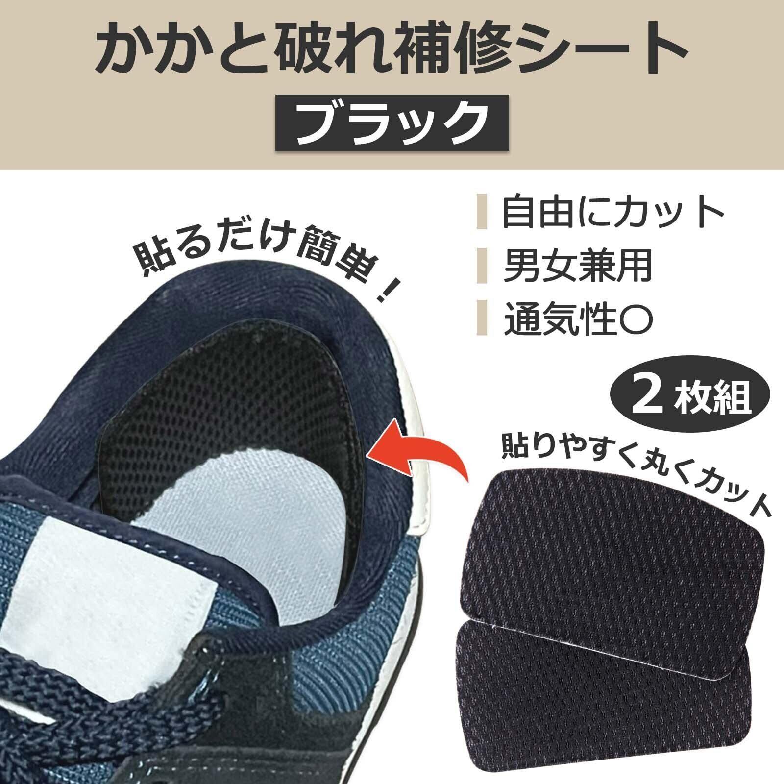 コモライフ かかと破れ補修シート (2枚入) ブラック かかと 補修 シール クッション メッシュ 軽量 カットOK