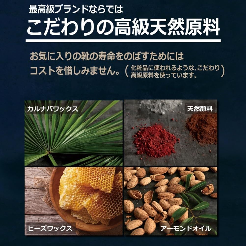 一流ブランドにも認められている最高品質の靴クリームは、極限まで配合された天然原料がかさついた革に栄養をしっかりと与え、本来の美しいツヤを取り戻します。