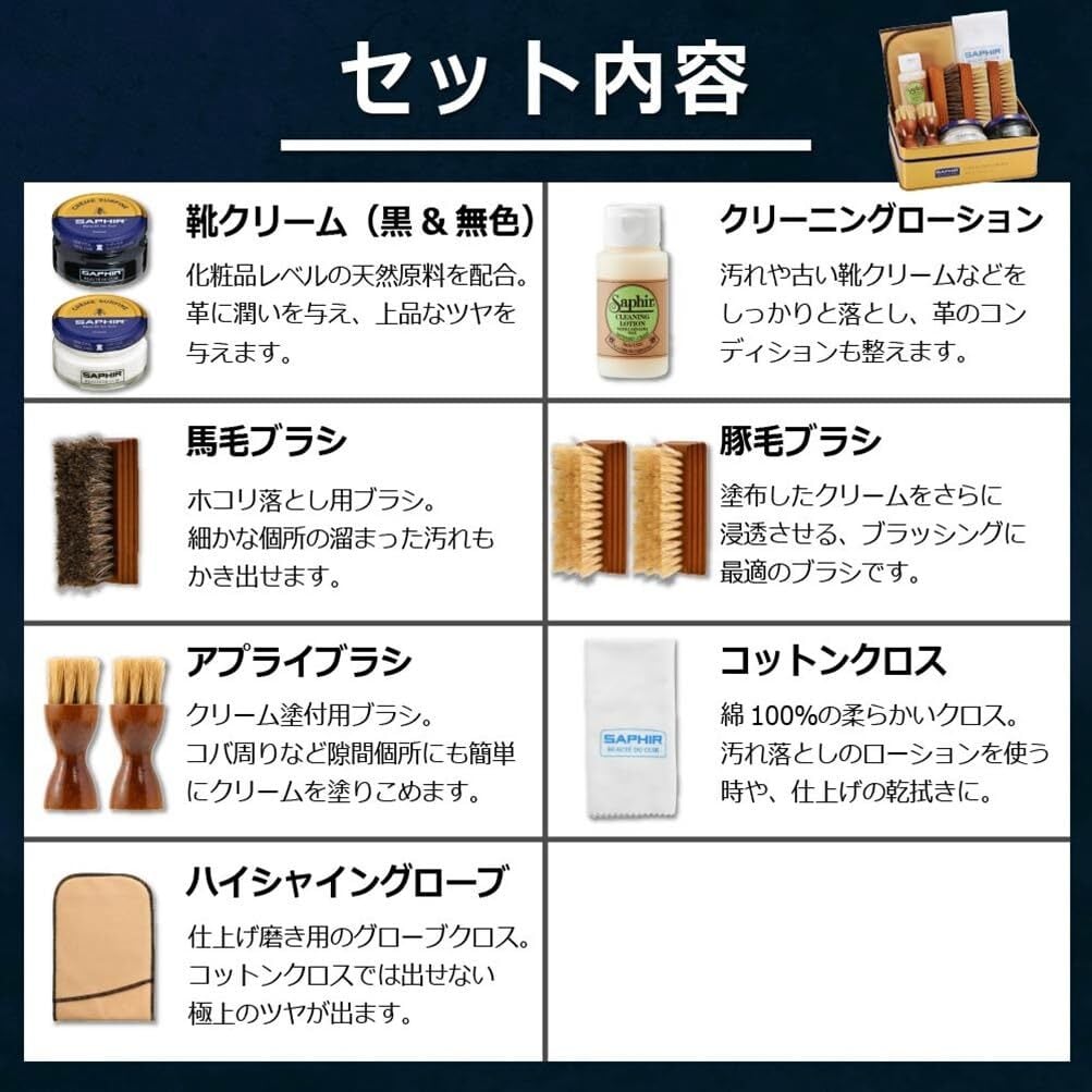 サフィール公式ショップの当店ならではの、内容盛り沢山のお得なシューケアセットです。