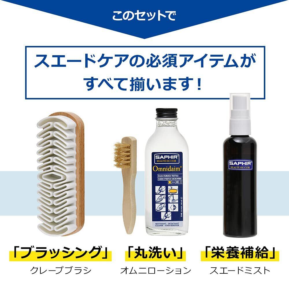 [サフィール] 汚れを落として色復活 スエードクリーナー & カラー セット クレープブラシ オムニローション 栄養ミスト クリーナー 汚れ落とし 着色 防水 靴磨き 手入れ
