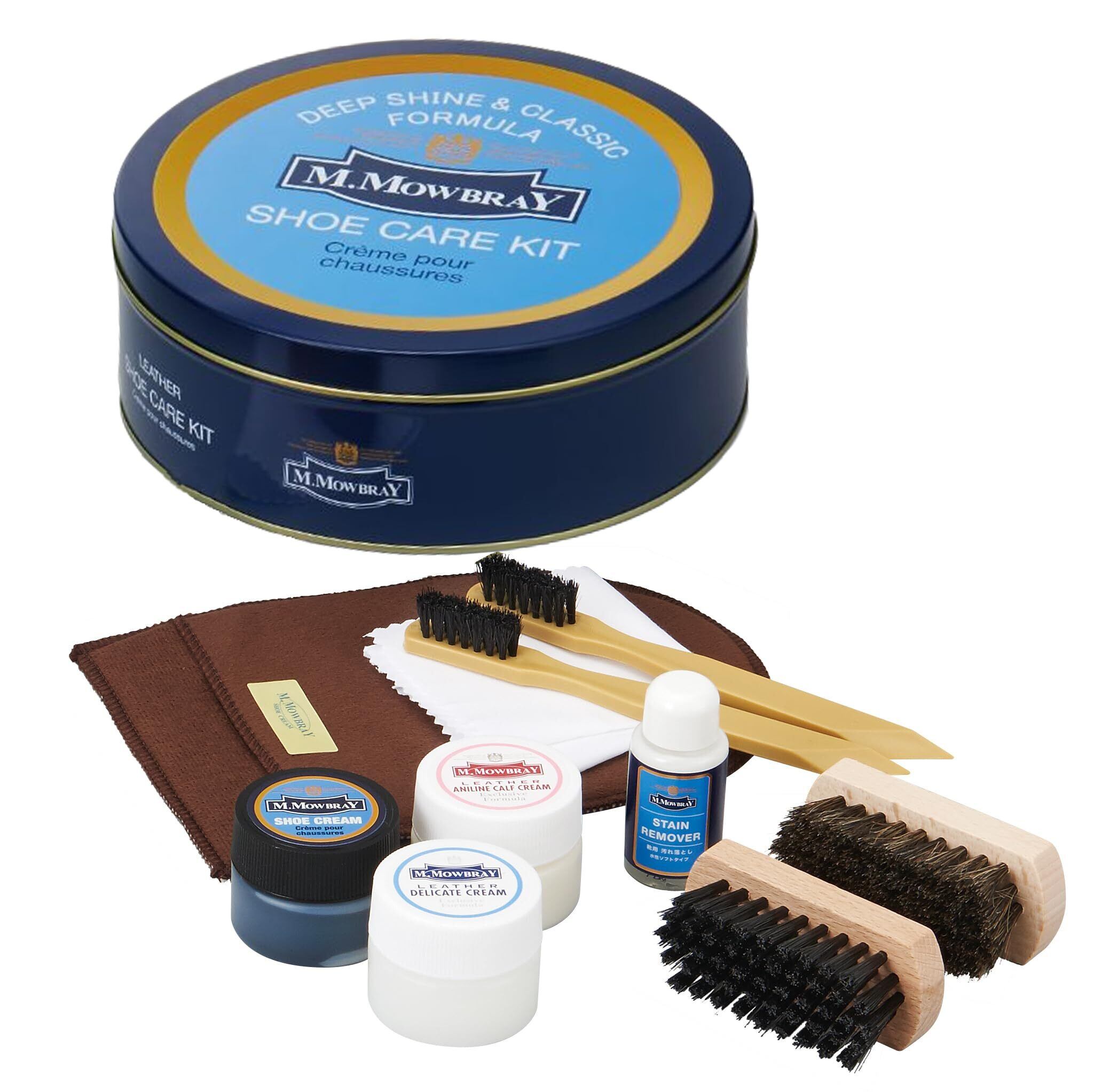 M.モゥブレィの代表的クリームが3種類入ったシューケアセットです。ケアするものが靴でも小物でも、クリームを使い分けることでケアすることが出来ます。※商品パッケージは予告なく変更になる場合がございます。予めご了承ください。