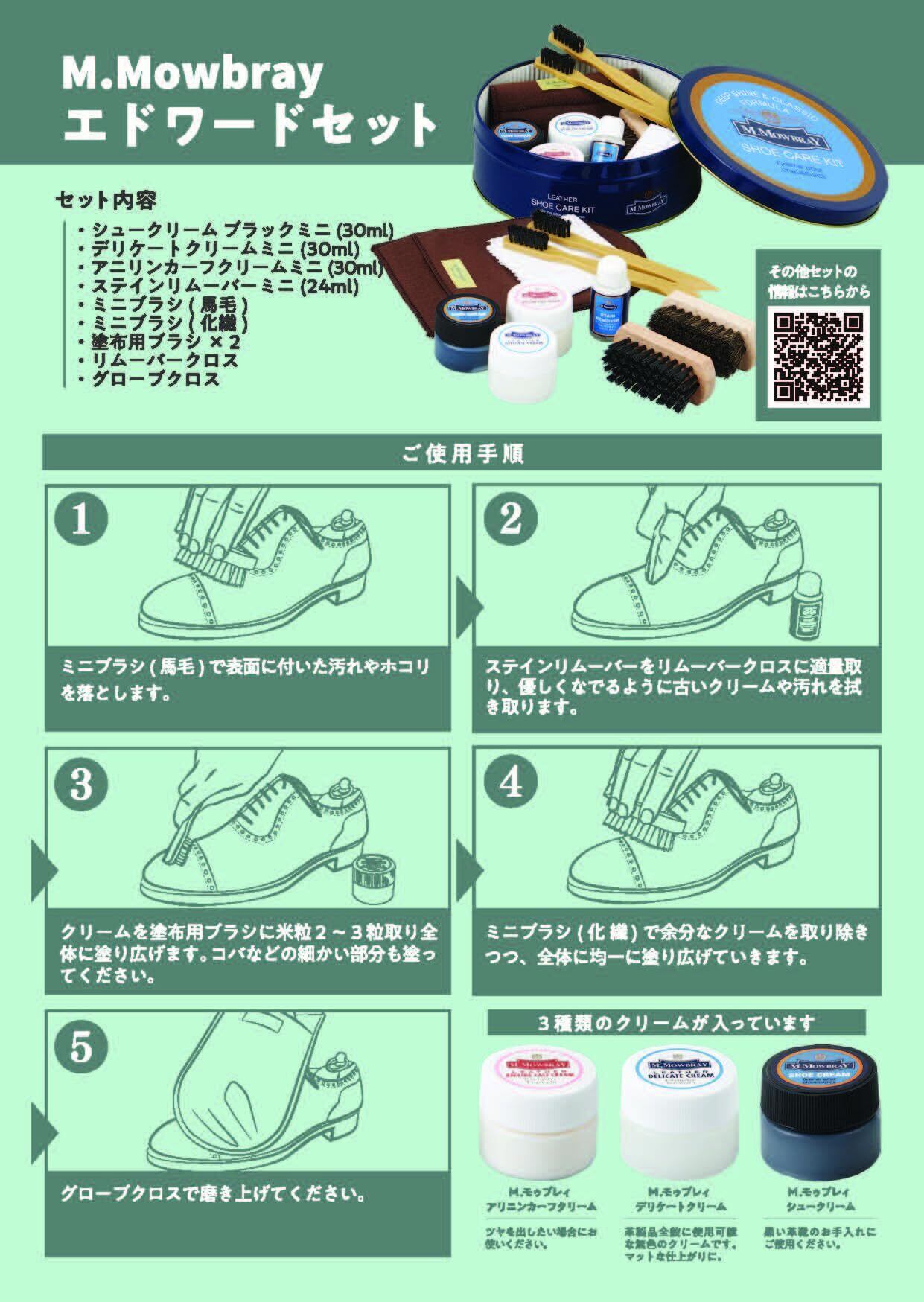 [M.モゥブレィ] シューケア 初めての靴磨き セット 全色対応 クリーム3種入り ブラシ3種4本入り ガイド付き ギフト 記念日 引き出物 エドワードセット 無色 Free