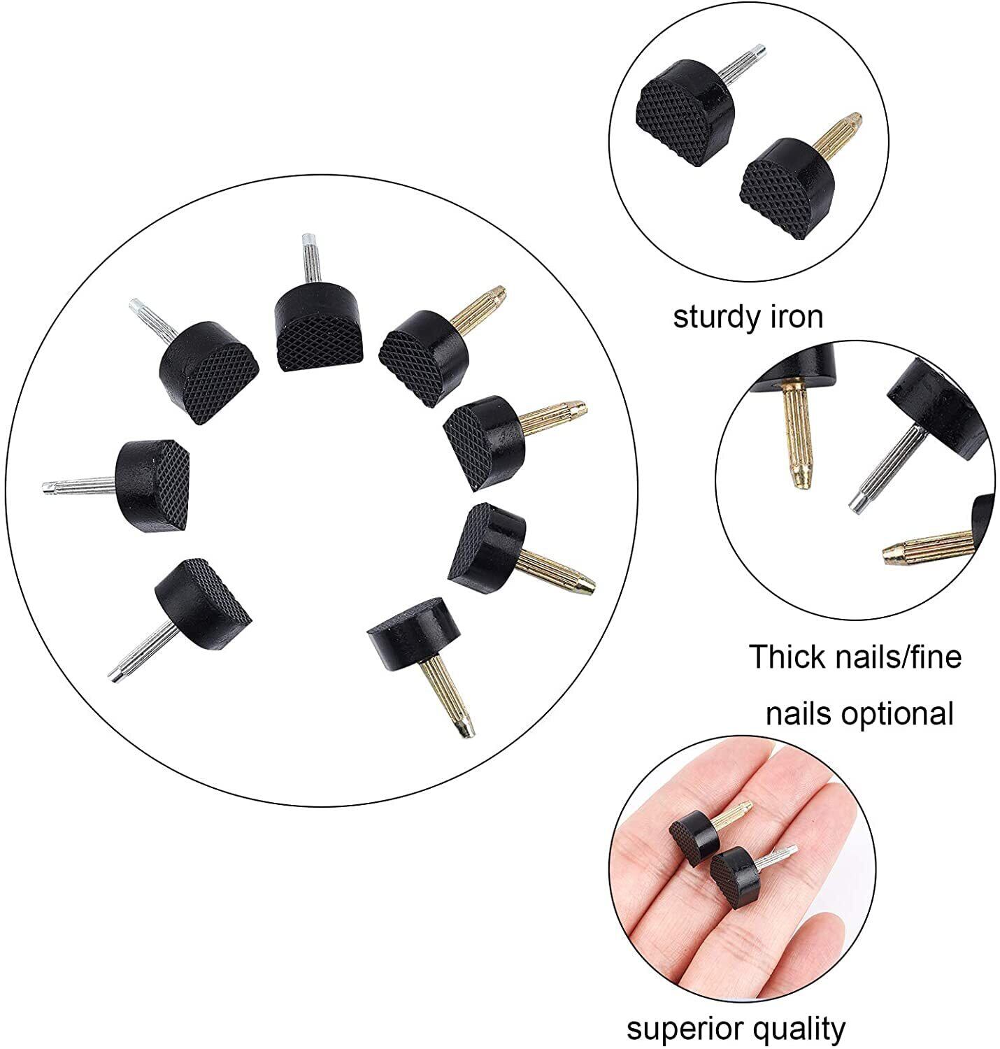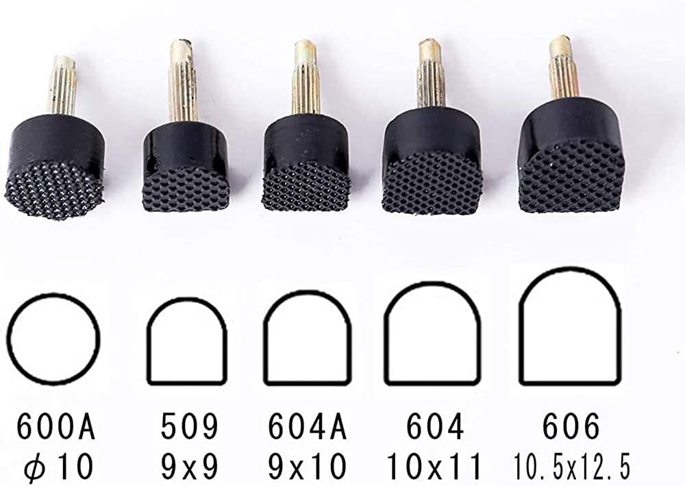 【セット内容】:30ペア/ 60個 のヒールキャップ(5種類それぞれ6ペア)。円形:600A(10mm) U字型:509(9*9mm)、604A(9*10mm)、604(10*11mm)、606(10.5*12.5mm)、軸径:3mm。
