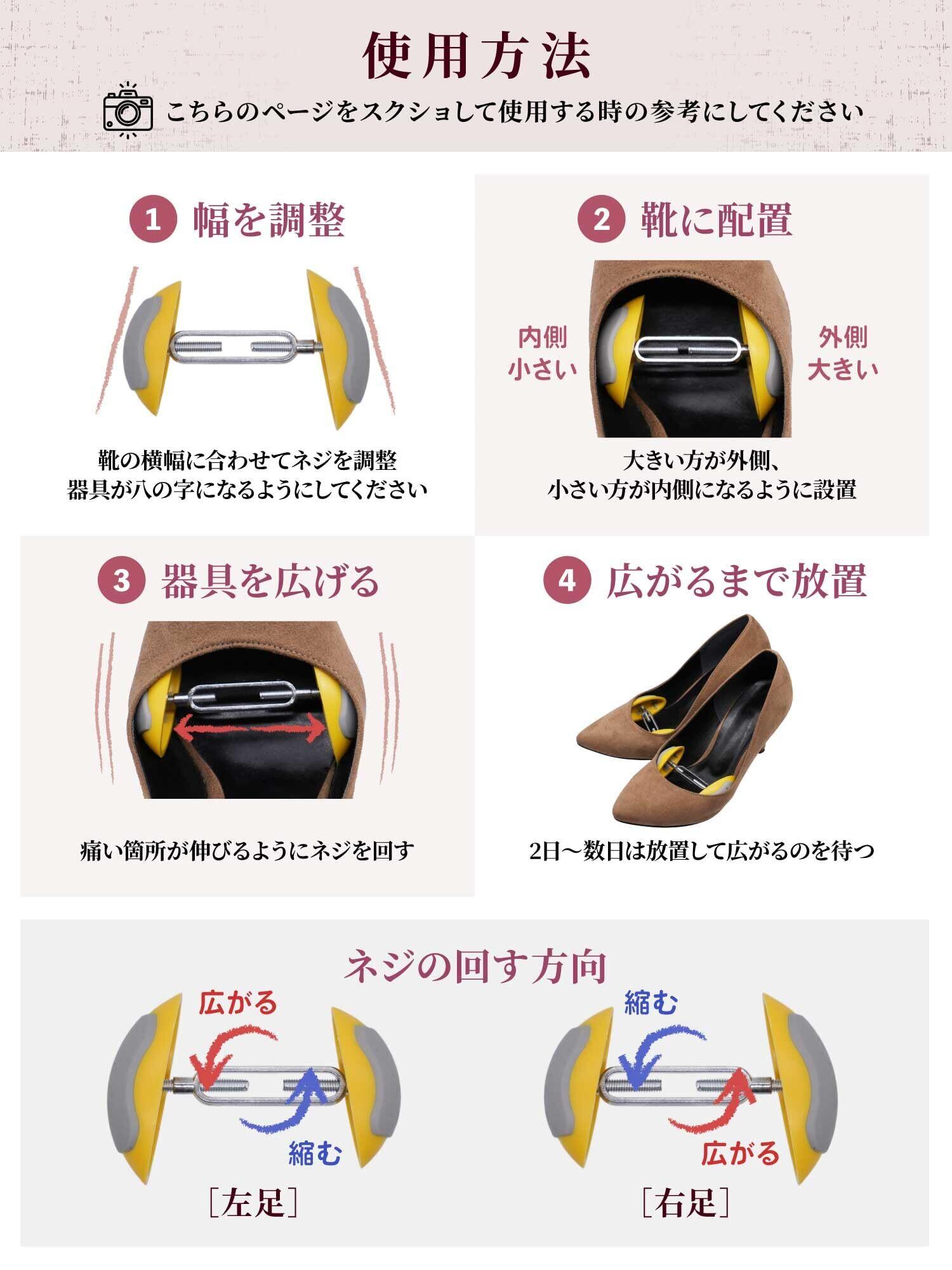 【靴屋に行かずにサイズ調整OK】 プロの手を借りなくても、シューズストレッチャーを使えば自宅で簡単に靴の幅を広げ、理想の履き心地を実現できます。