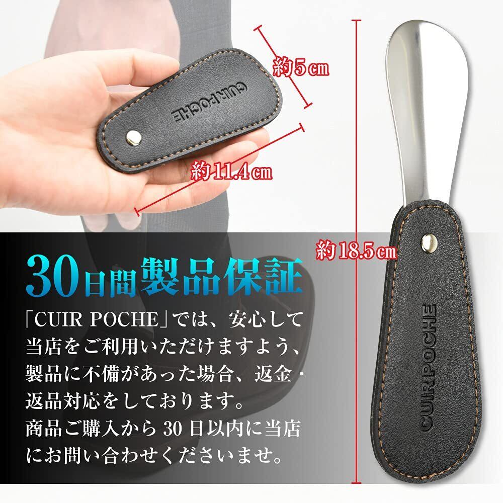 CUIR POCHE 靴べら シューホーン 携帯 おしゃれ レザー調 カバー付き ロック機能 傷つき防止 撥水加工 防汚加工 ステンレス 軽量 ビジネス ゴルフ メンズ レディース