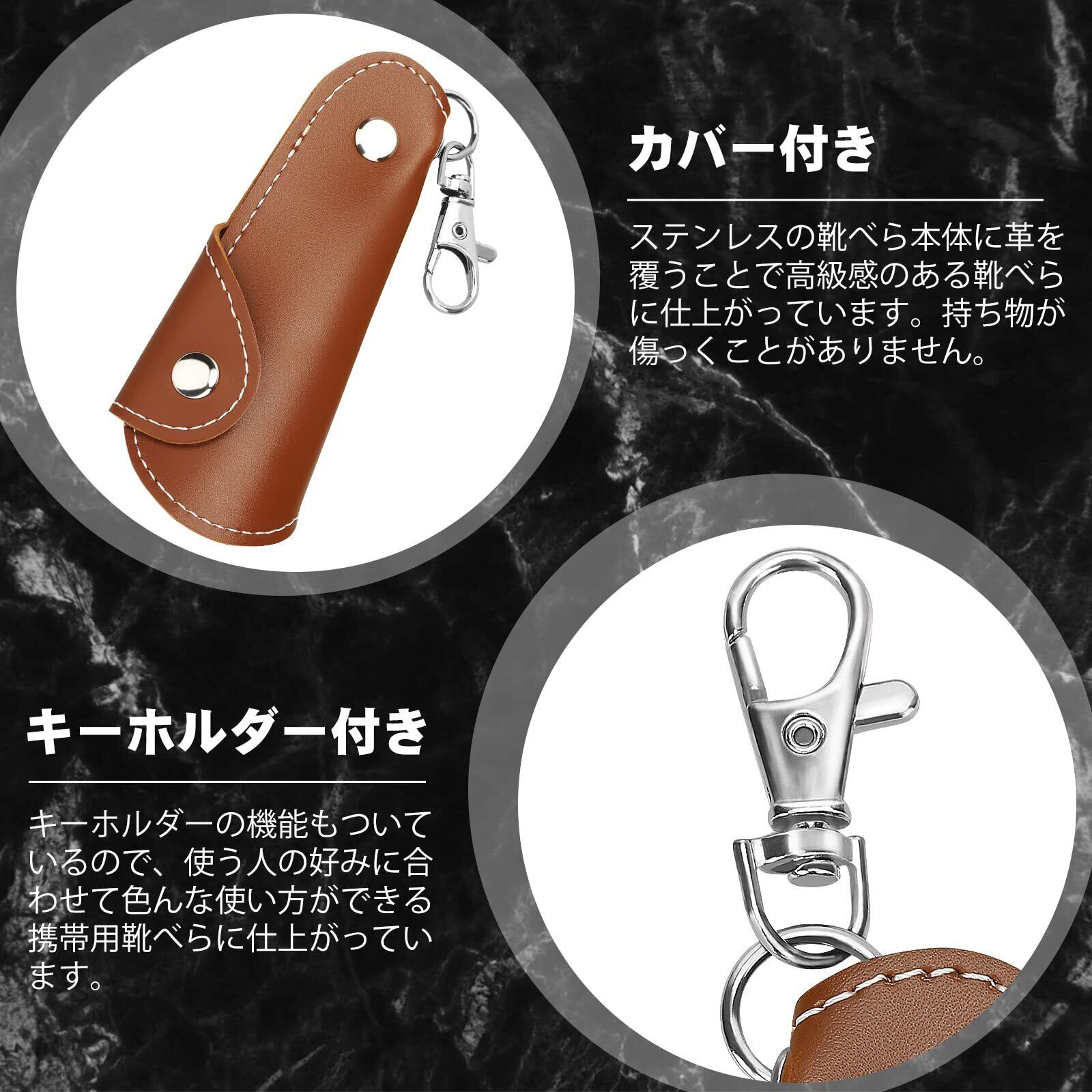 [ZOMAKE] 靴べら シューホーン ミニ PUカバー キーホルダー付き ステンレス製 おしゃれ 短い 耐用 携帯用 男性、女性、子供、高齢者用