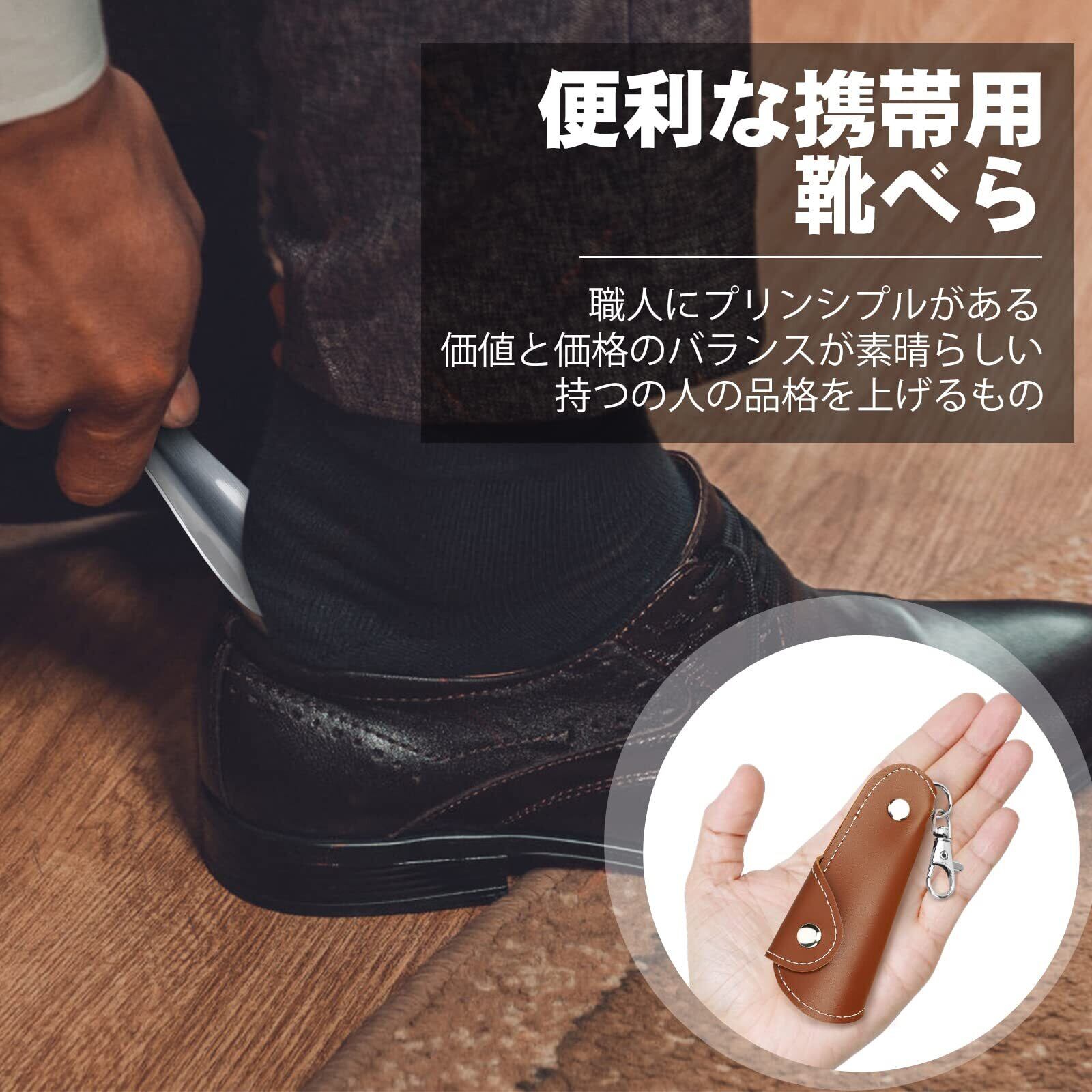 【コンパクト】靴べらの本体サイズ:10×3.7×0.1cm、重さは40g。 キーホルダー付きで、バッグに掛けたり、バッグ・ポケットに入れたり、ミニ靴べらはバッグの中に入れてもスペースを取らないので、日常的に持ち歩くのにとても便利です。