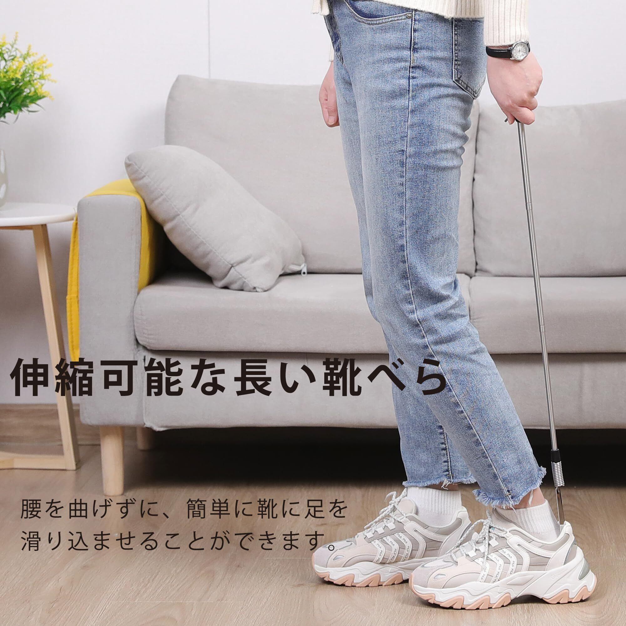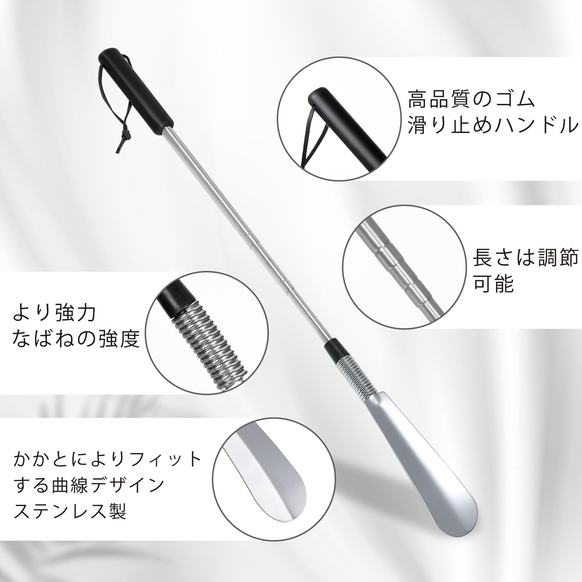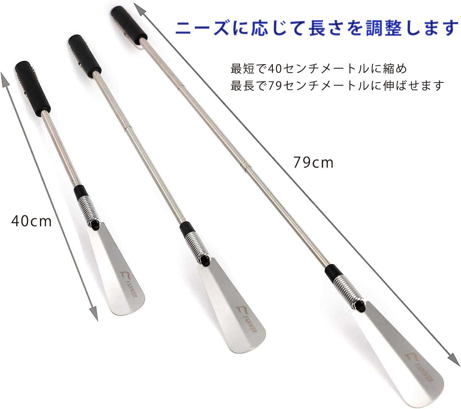 【伸縮 靴べら】長い靴べらは40cmから79cmまで調節可能です。異なる身長の方に適しています!