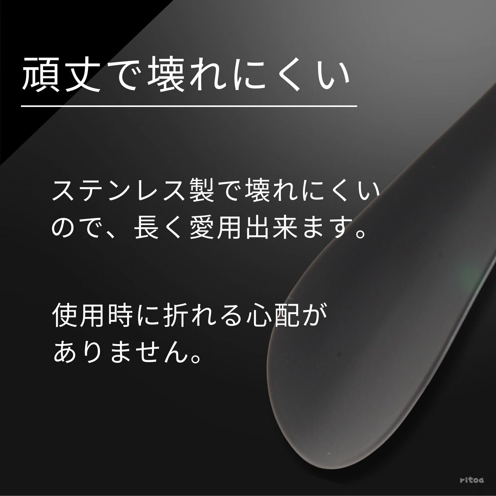 【耐久性】 頑丈で壊れにくい 靴べら なら、これがおすすめ! 高品質な ステンレス 製で、長く愛用できます。しっかりとした強度があり、使用時に折れる心配がありません。コンパクト ながらも、快適に靴を履ける設計です。毎日の靴の着脱をスムーズにする 靴べら で、ストレスフリーな履き心地を体験してください。