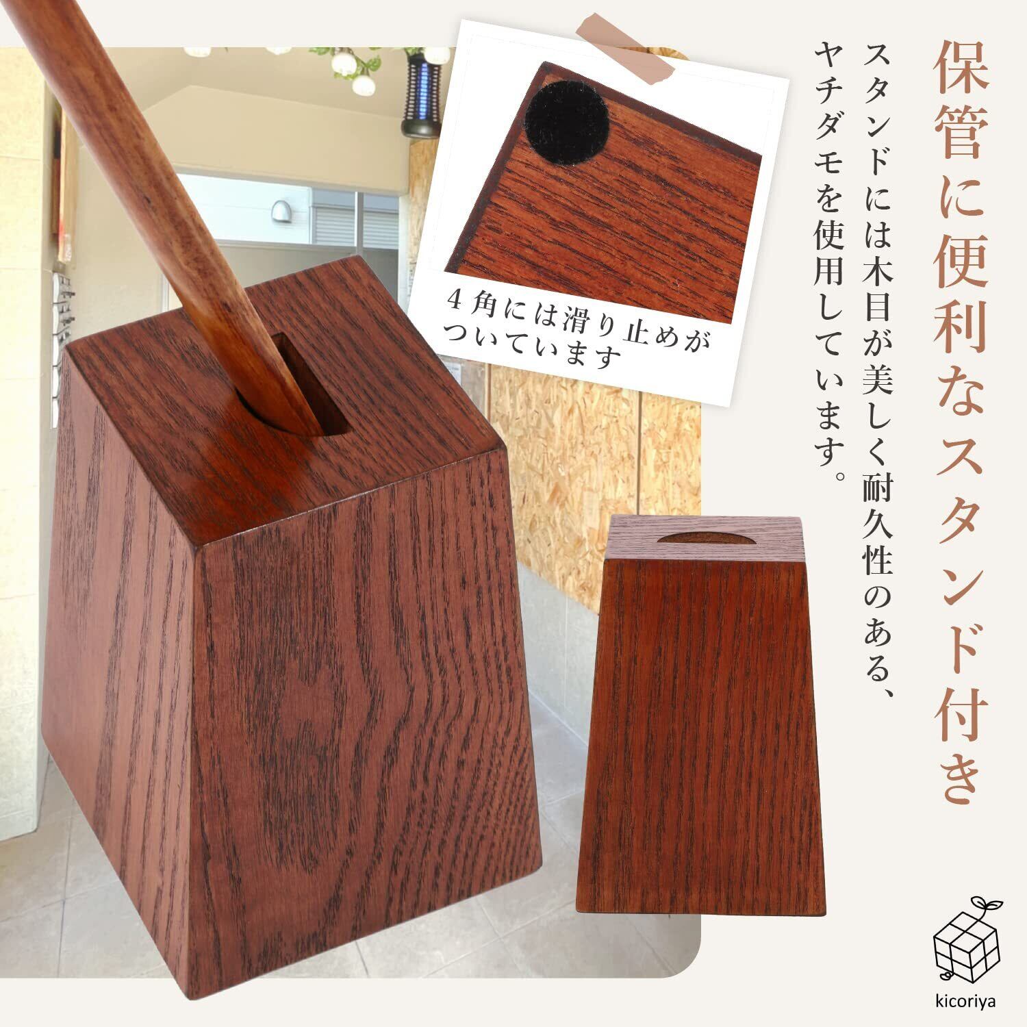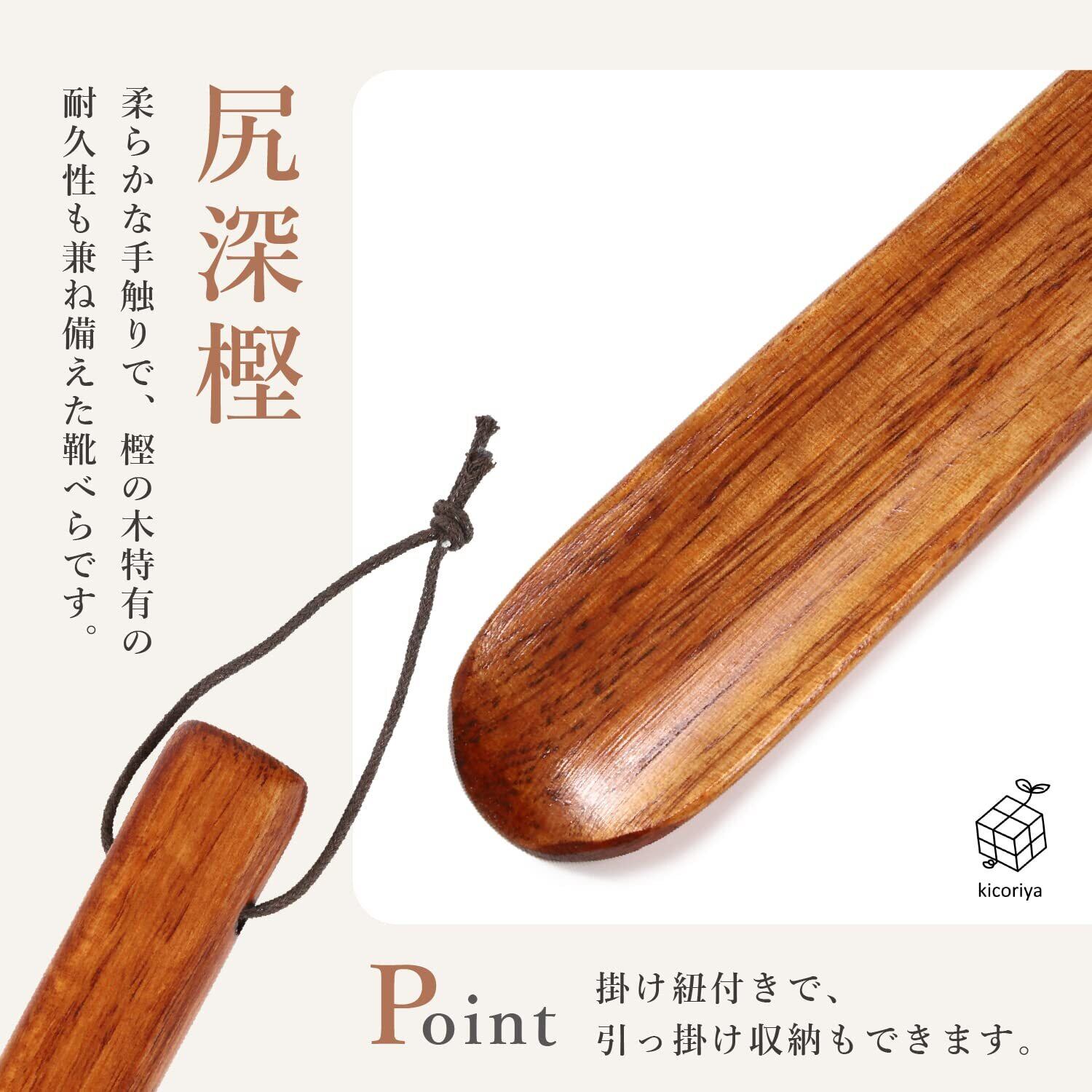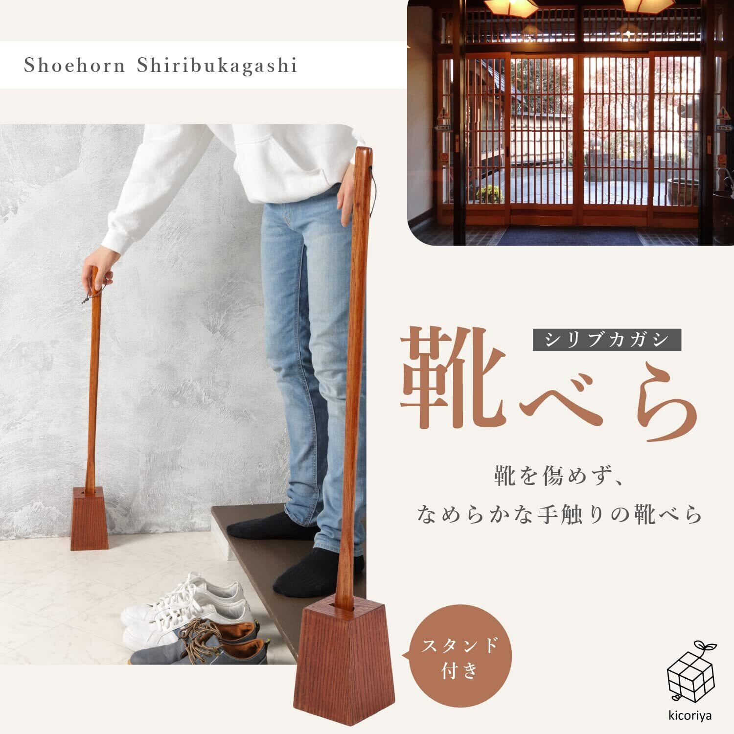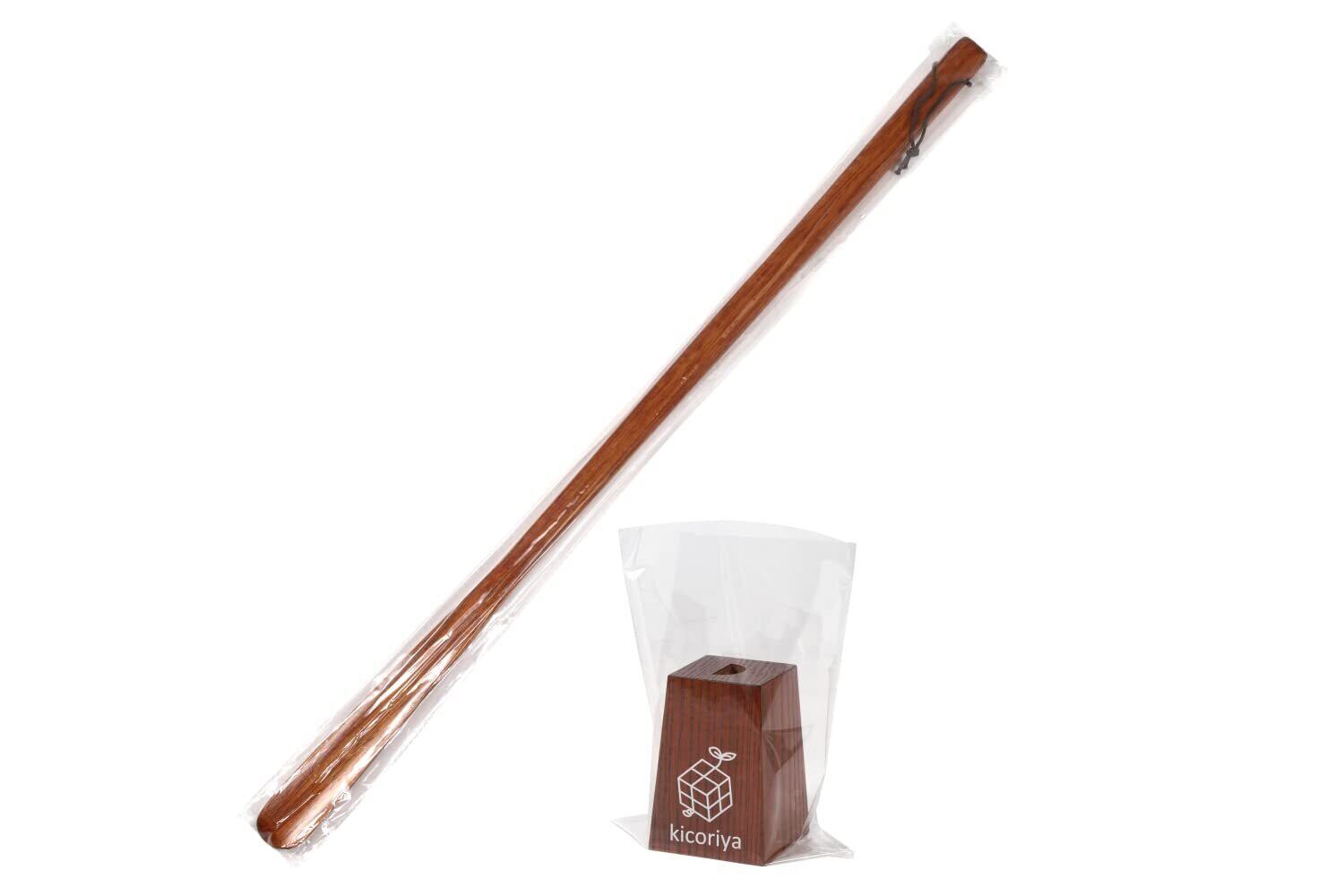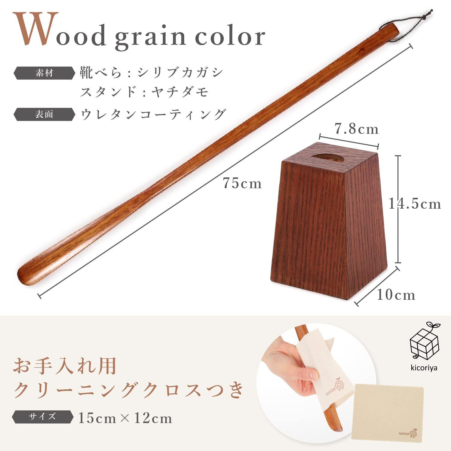 [kicoriya] 靴べら ベラ ロング スタンド 台付き 木製 長い 75cm おしゃれ クロス付属 ブラウン 茶