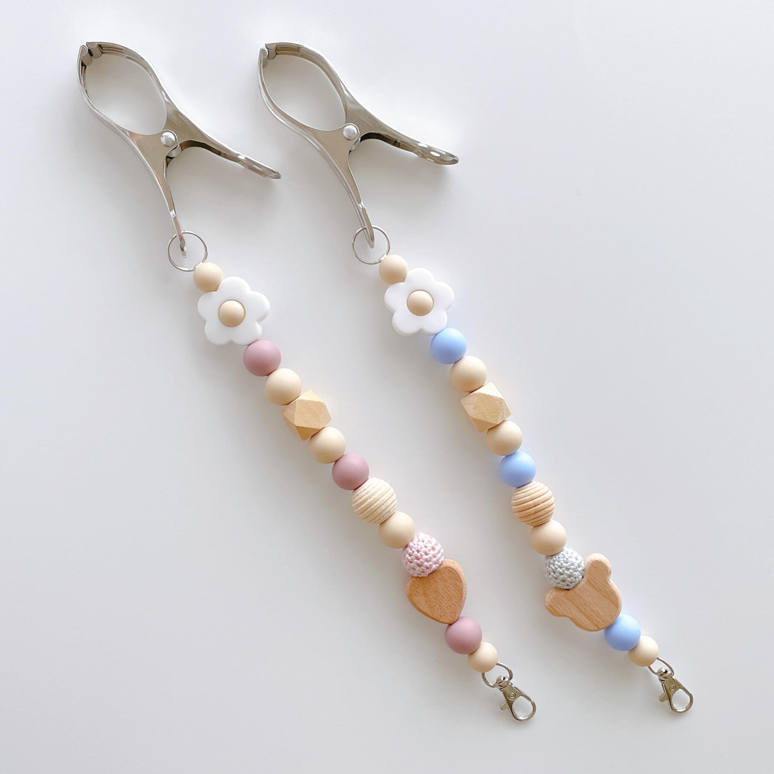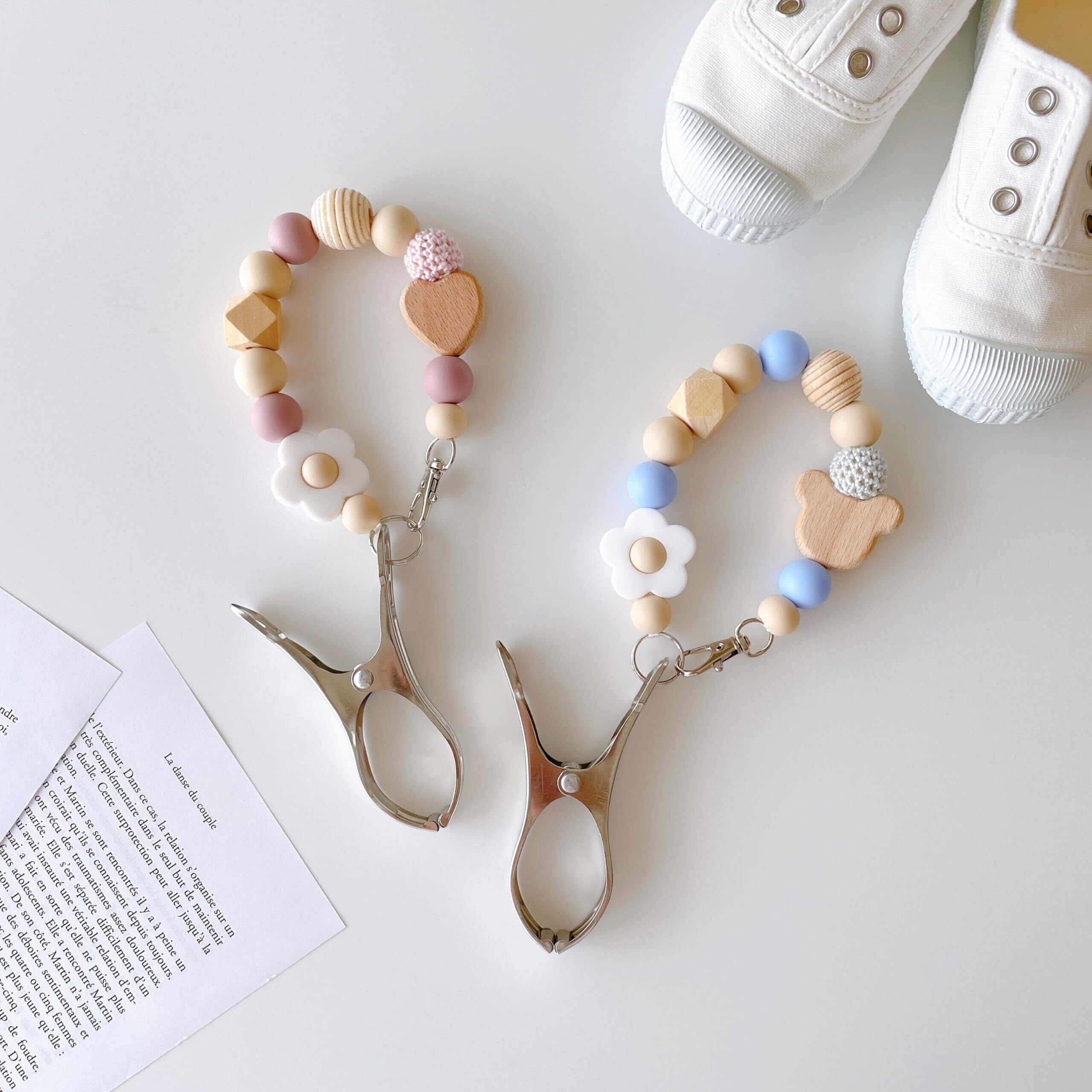 パステルカラーと木製のハートまたはくまさんが可愛らしいシューズクリップです。おしゃれで便利にお子様のお靴を持ち運びしていただけます。