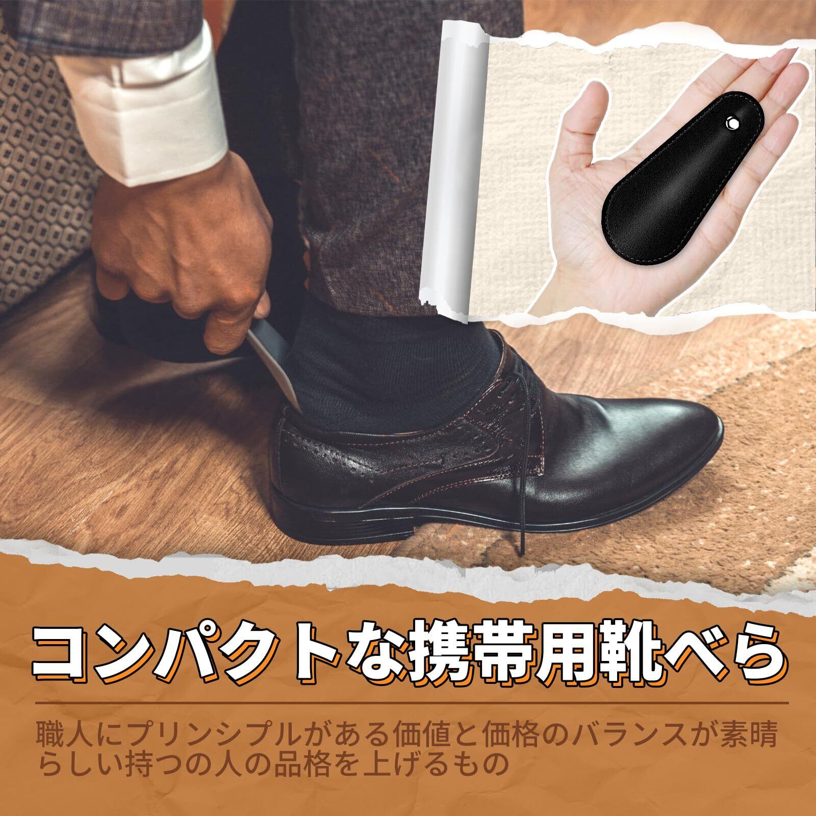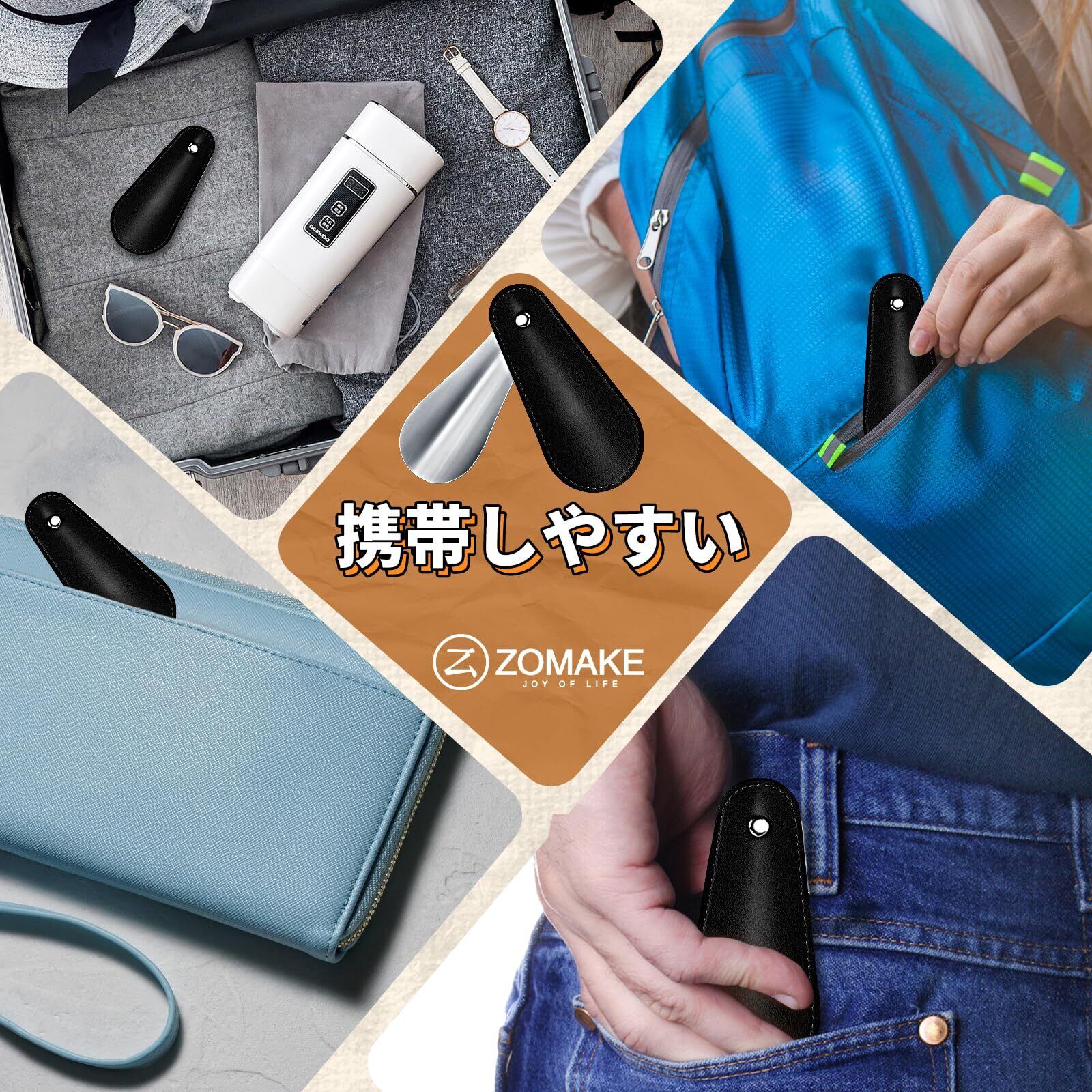 [ZOMAKE] 靴べら シューホーン 携帯用 ミニ PUカバー ステンレス製 おしゃれ コンパクト 短い 耐用 軽量 男性、女性、子供、高齢者用