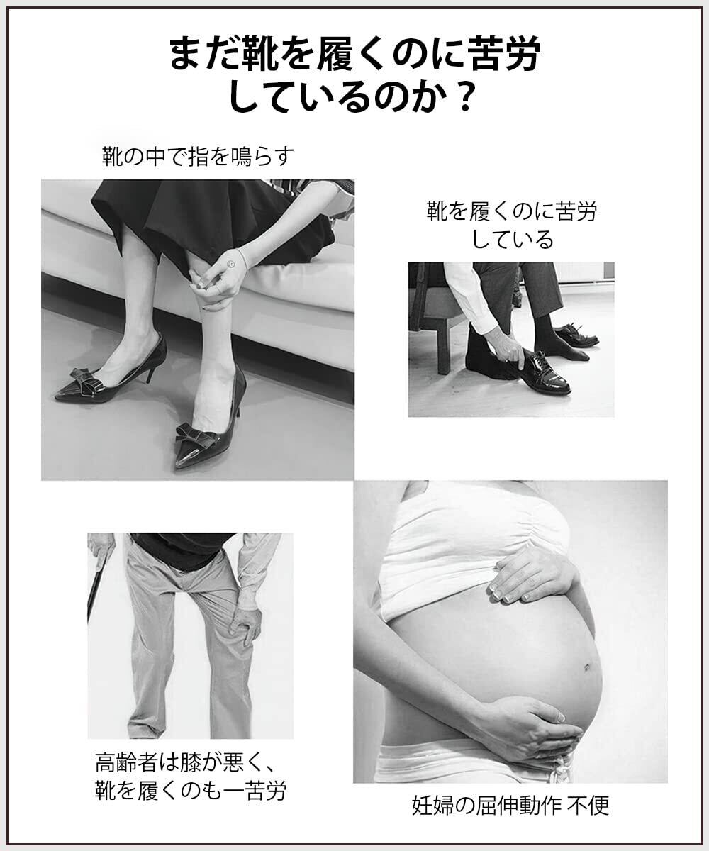 【使い勝手】:靴べらは幅広い範囲に使われています。特に妊娠している方、お年寄り、子どもや肩こり、腰痛の方にもっと必要されています。靴べらの使用により、過度に腰をかがめなくても靴を簡単に履けます。また靴と直接の接触を防ぎ、バイキンの侵入を有効に抑えられます。玄関に靴べらをご用意したら、衛生的にいいし、生活はもっと便利になります。