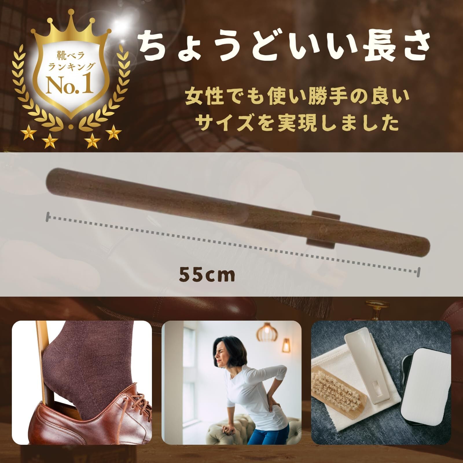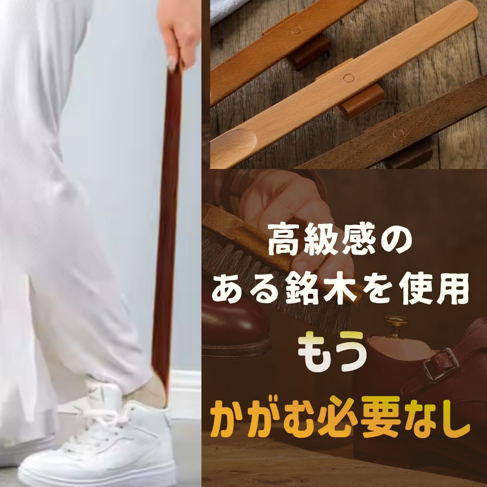 [miomuu] 【天然ブナ×マグネット】かがまず履ける 靴ベラ 55cm ロング 木製 おしゃれ マグネット式 立ったまま使える (ベージュ)(ウォルナット)