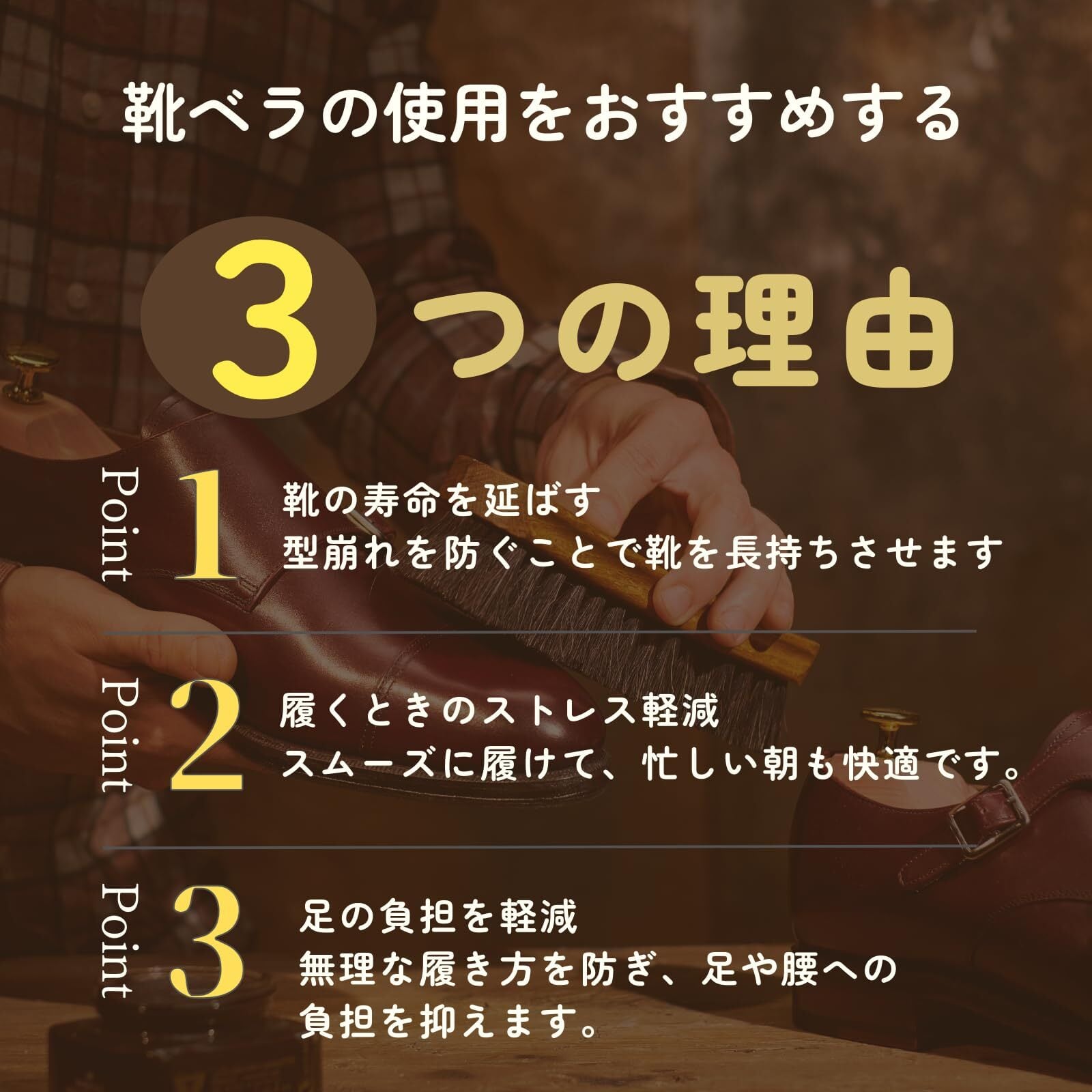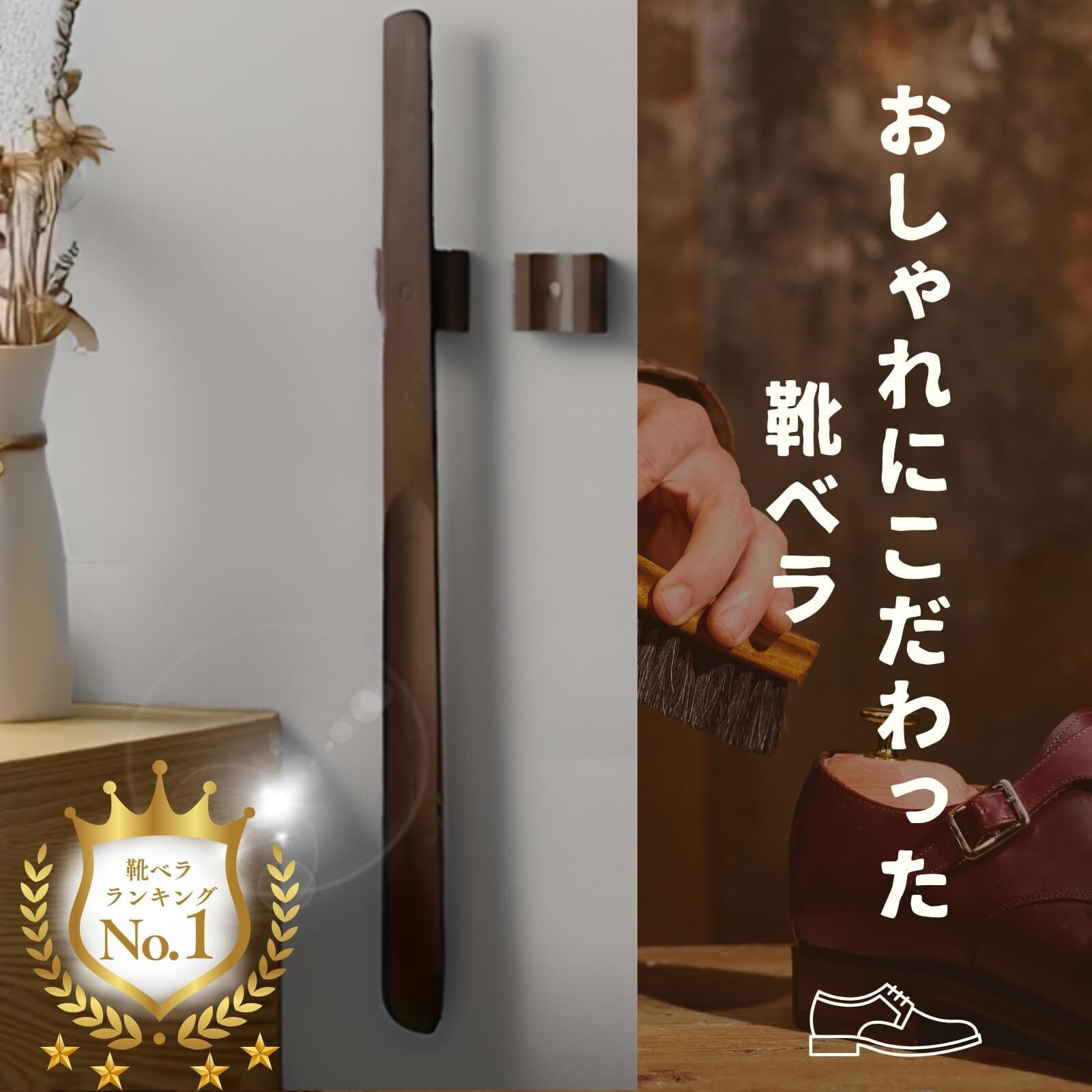 【かがまず履ける、毎日の味方】マグネット式ロング靴ベラ 55cm フロート収納タイプ 【55cmのロングサイズ】 腰をかがめずに立ったまま使えるので、毎日の靴の脱ぎ履きがスムーズ。ご年配の方や妊婦さんにもやさしい設計です。 【マグネット脱着でワンタッチ収納】 靴べら本体にマグネットが内蔵されているため、スチール製の玄関ドアやラックにピタッと吸着。使いたいときにすぐ手に取れ、使い終わったらサッと戻せます。 【フロートタイプでおしゃれに収納】 台座やフックがなくても自立するように見える"浮いてる"ような収納スタイル。玄関の雰囲気を壊さず、シンプル&スタイリッシュに美しく馴染みます。