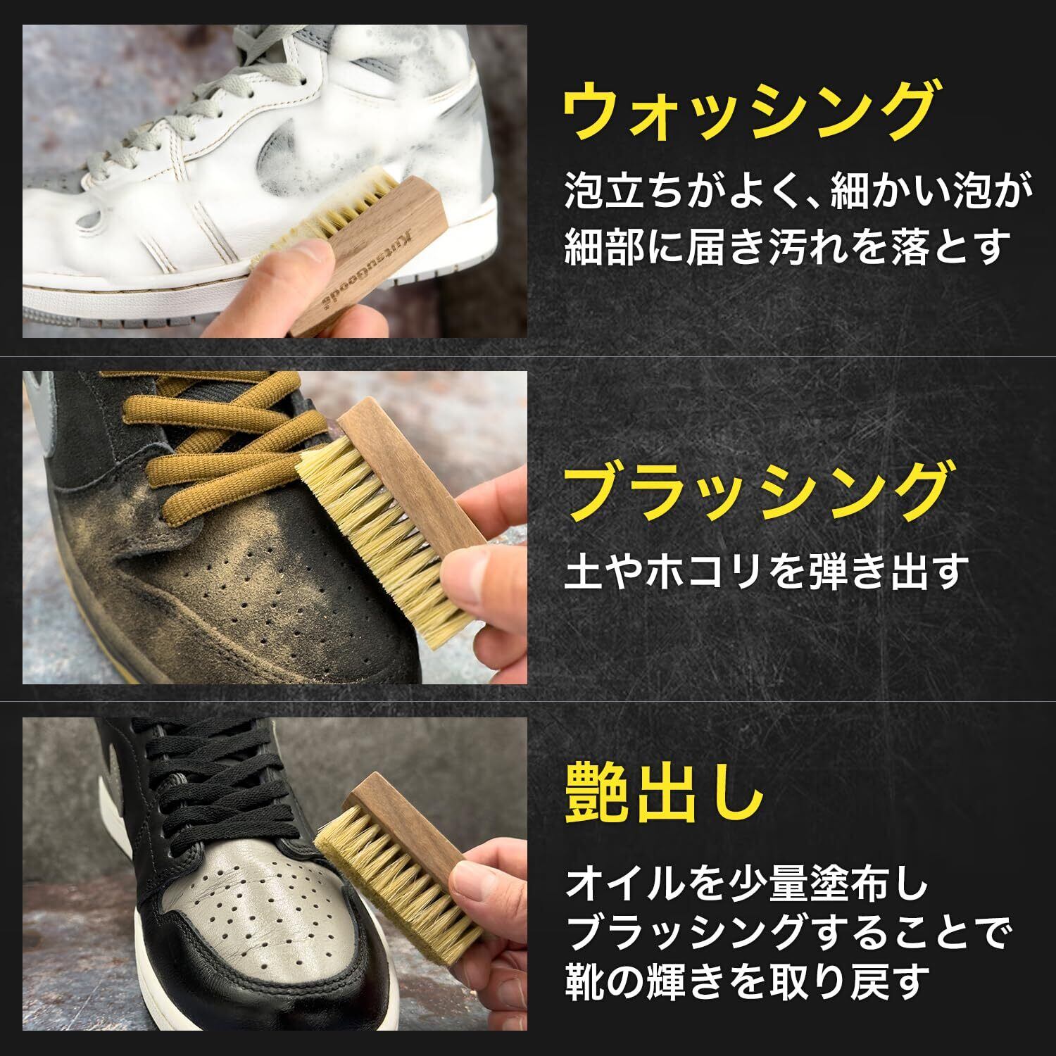 [クツグッズ] スニーカー ブラシ 靴 ブラッシング 洗い シューズブラシ 靴ブラシ 汚れ落とし シューケア 豚毛ブラシ(マルチ/ウォッシング)