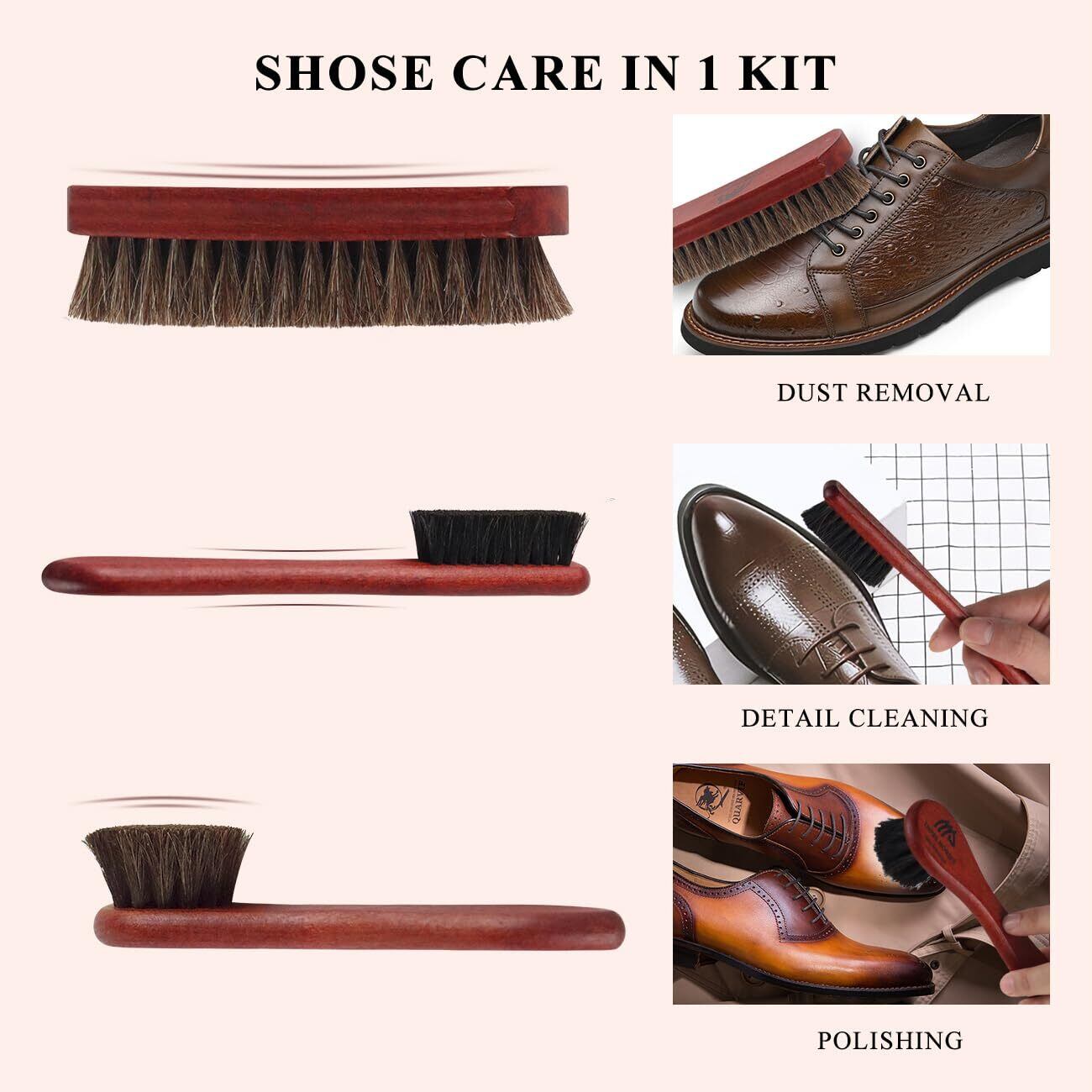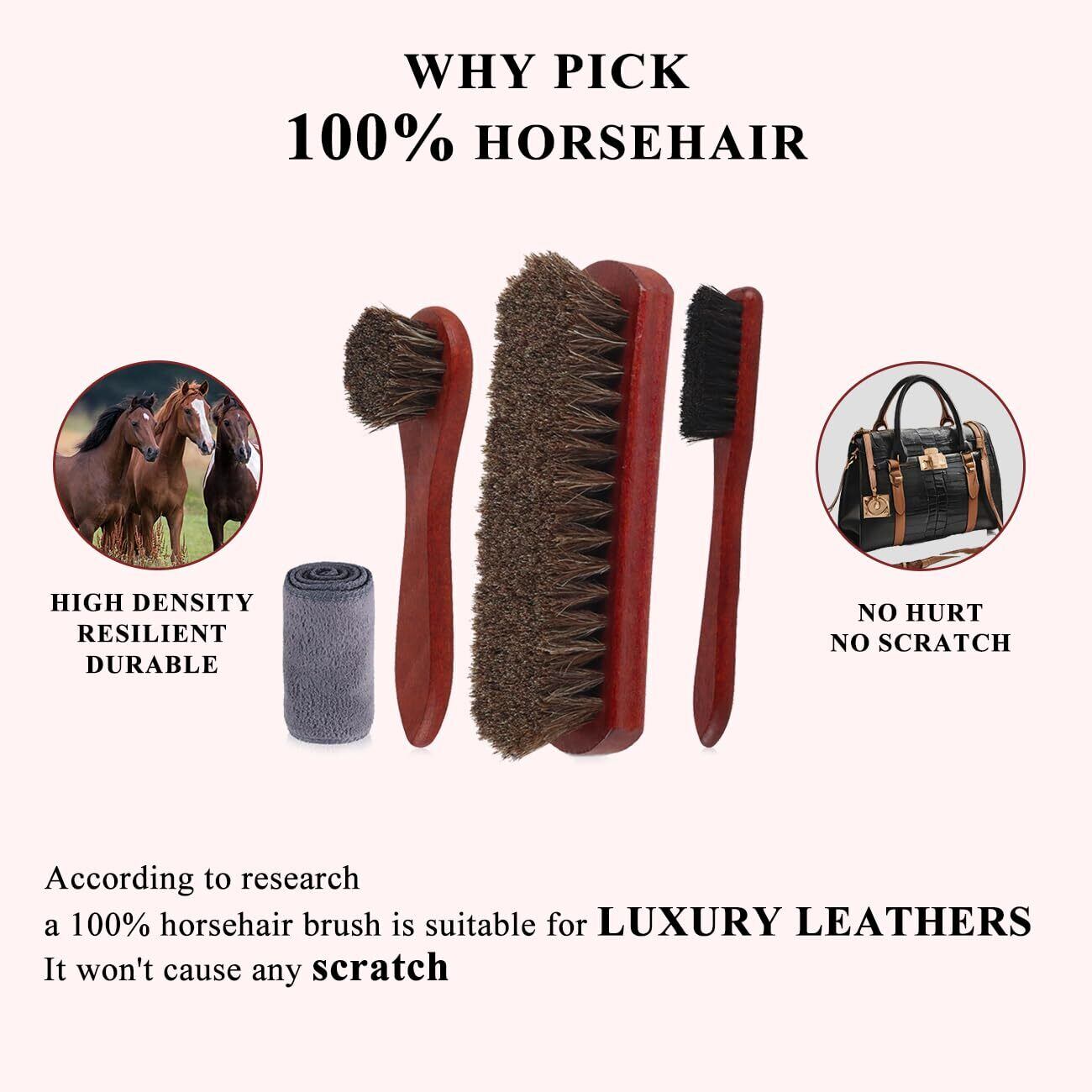 馬毛靴ブラシ 4個 100%馬毛 プレミアム靴クリーニングブラシキット マイクロファイバークロスレザーブーツ 靴 ブーツ お手入れ用クリーナー ブラシ レザーポリッシュ ドーバー アプリケーター エッジブラシ付き