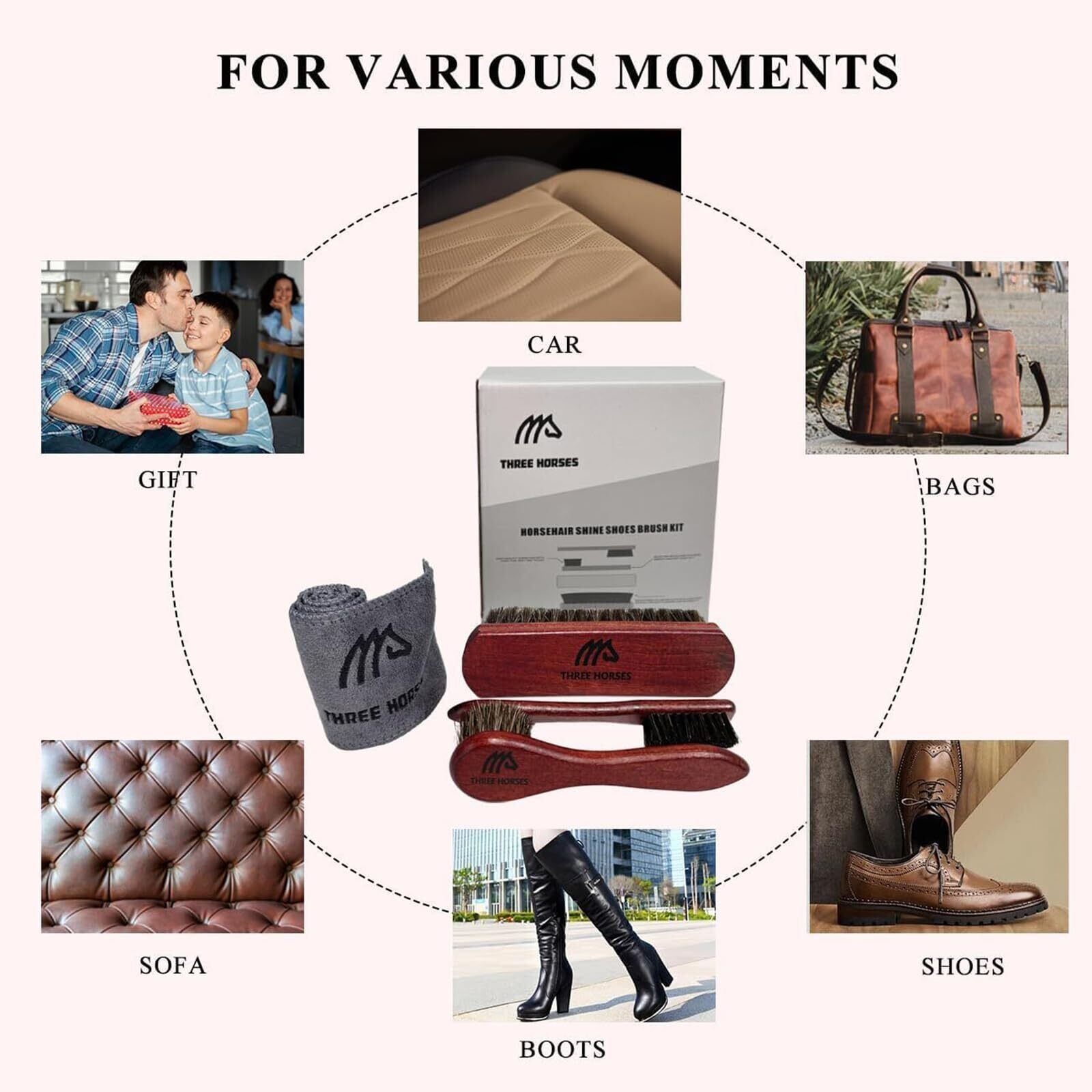 【特価セール】馬毛靴ブラシ 4個 100%馬毛 プレミアム靴クリーニングブラシキット マイクロファイバークロスレザーブーツ 靴 ブーツ お手入れ用クリーナー ブラシ レザーポリッシュ ドーバー アプリケーター エッジブラシ付き | 無意味ステッカー