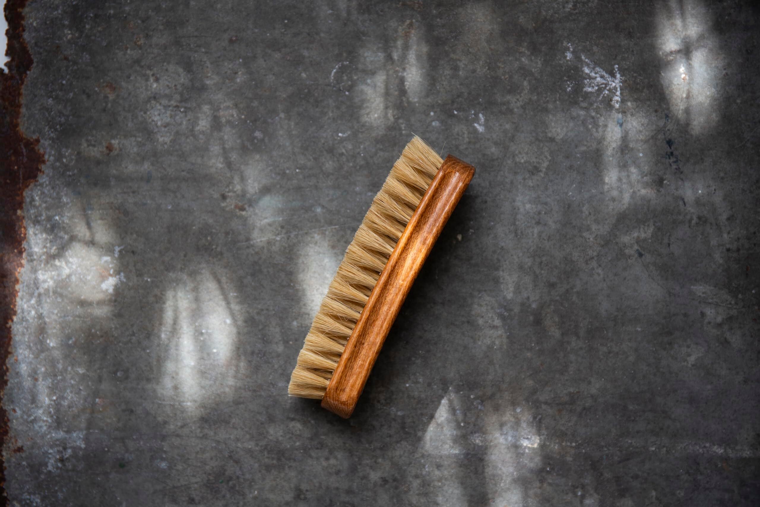 ピッグブラシは革にクリームを塗った後のツヤ出し、仕上げ用のブラシです。毛足が短く、コシのある豚毛を採用しているため、革靴やブーツなどにクリームやオイルを塗り込んだ後のブラッシングに最適です。使い込むごとに毛がクリームやオイルの成分を吸い込むことで、ツヤが出やすくなり、ブラシが育っていきます。